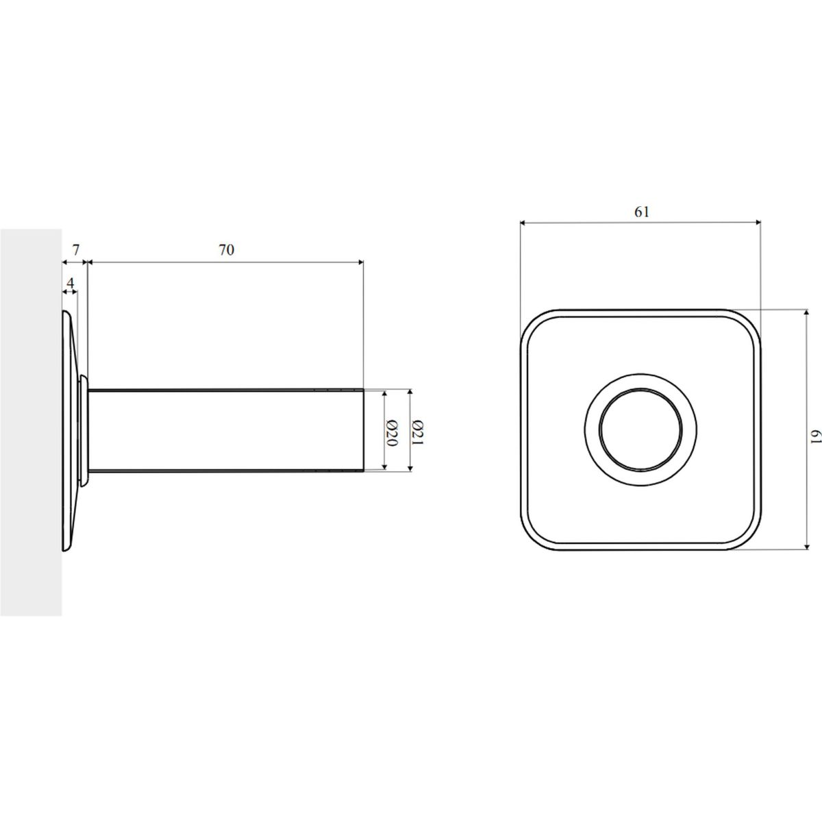 - 2 x roseta cuadrada simple (orificios ¾" = Ø 25 mm)
