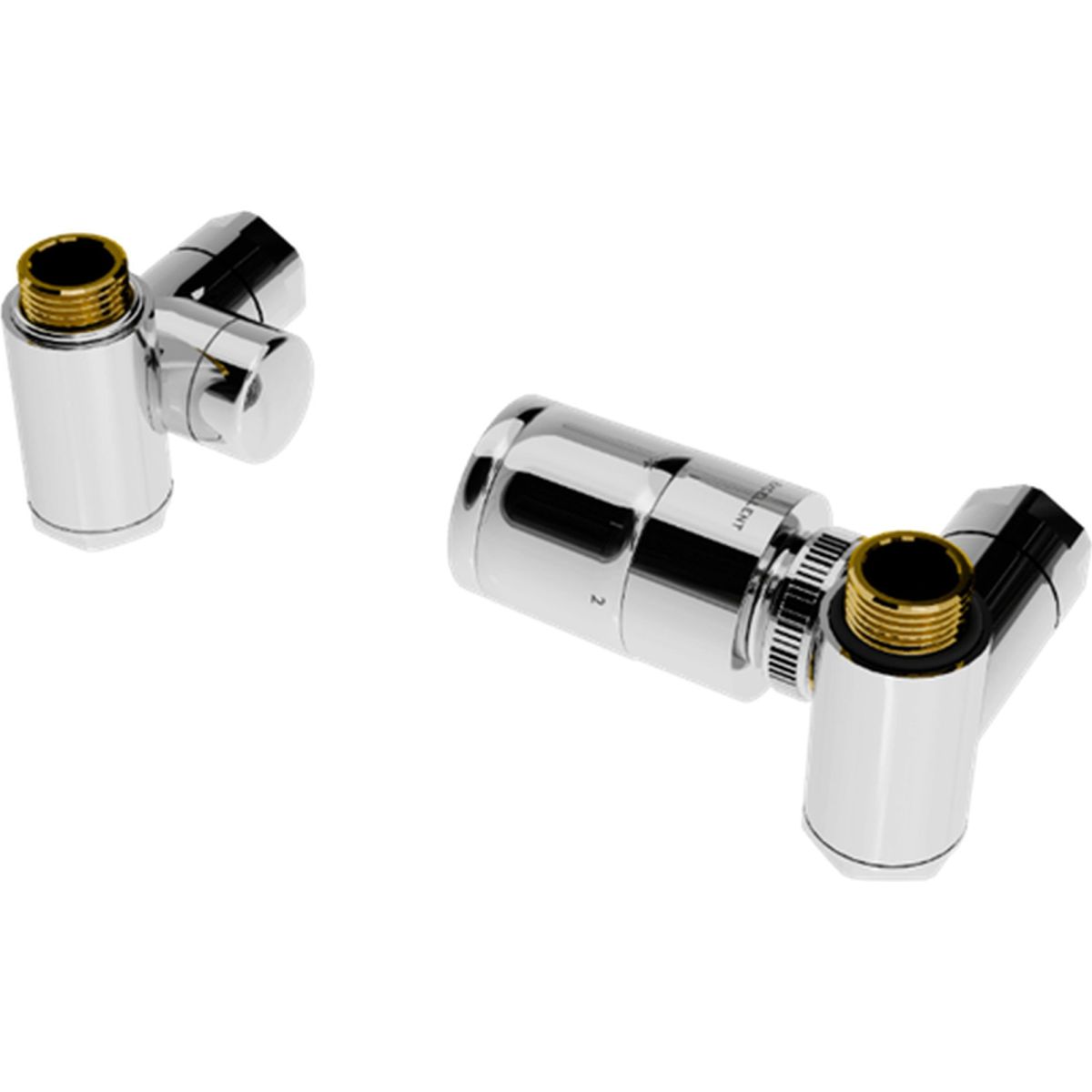 El conjunto termostático Caldo es una solución moderna y funcional diseñada para su instalación en radiadores de calefacción central en un sistema de dos tubos. La válvula permite un control preciso de la temperatura, pero también -gracias al cuerpo integrado con una T- es posible conectar un calentador eléctrico directamente a través de la válvula al radiador, lo que aumenta la comodidad de uso y la flexibilidad del sistema de calefacción.el cabezal termostático con mando de control incorpora un fiable sensor de líquido y la función anticongelante (a 6°C en el ajuste "*"). El cabezal se ha diseñado para personas con diferentes capacidades sensoriales: gracias al "clic" perceptible al cambiar el ajuste, la regulación de la temperatura es intuitiva y fácil de usar.