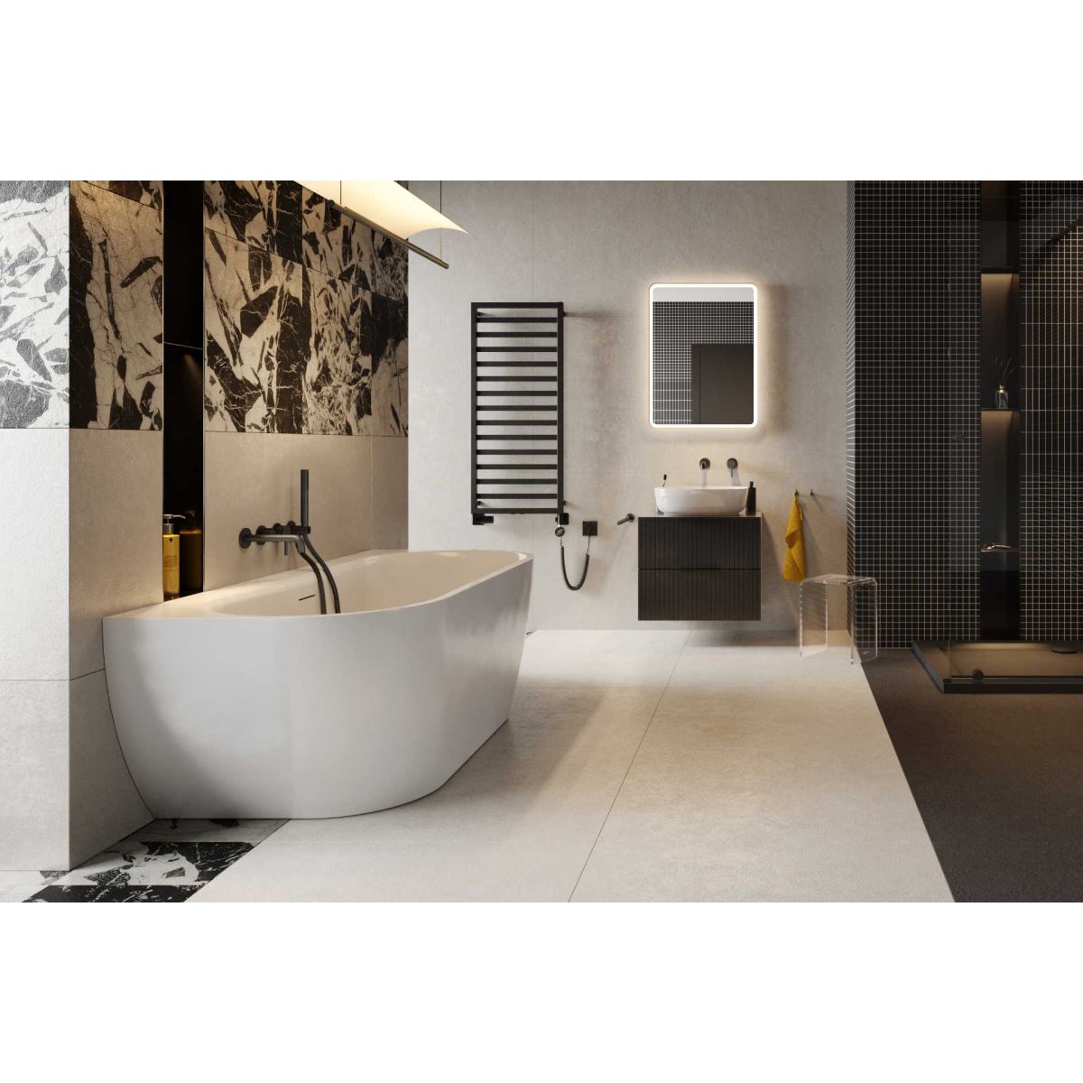 Es el complemento perfecto del mezclador empotrado de 2 funciones para ducha/bañera Delta Pi junto con el conjunto de ducha puntual Loka.
