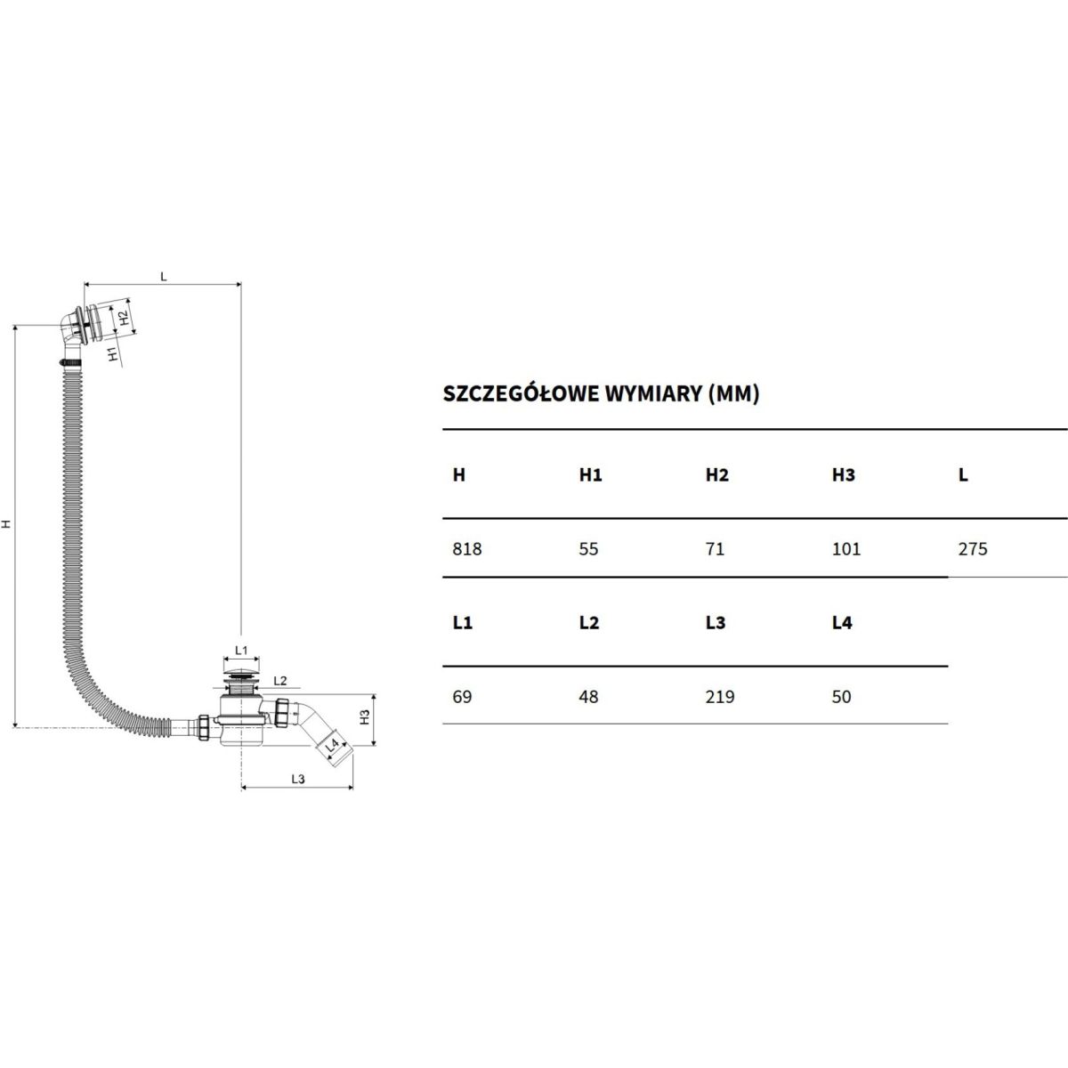 -el tubo de desagüe Flex permite ajustar la longitud del desagüe para adaptarlo a cualquier bañera