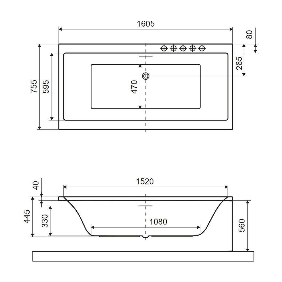 - Capacidad hasta el rebosadero: 215 l