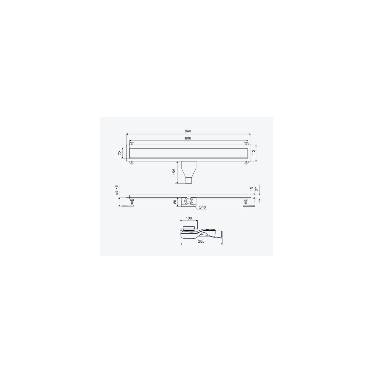 - Longitud: 80 cm con reborde