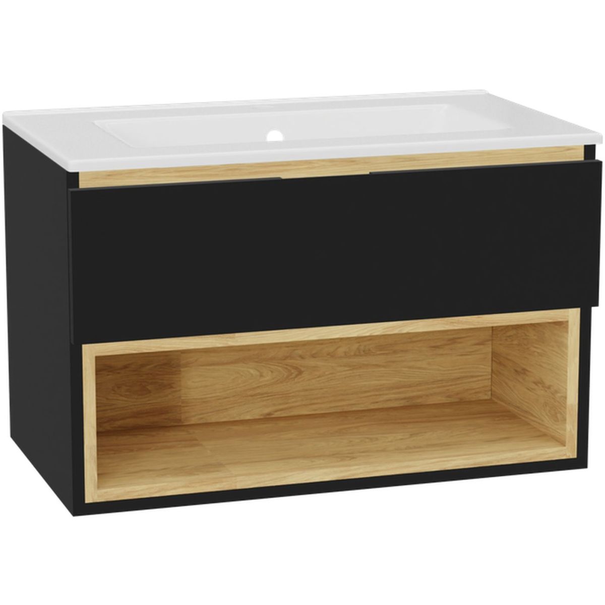 Tuto 2.0 mueble armario 80 cm, 1 cajón sin frente, sin encimera, Negro mate/roble MLEX.2171.800.BKBL