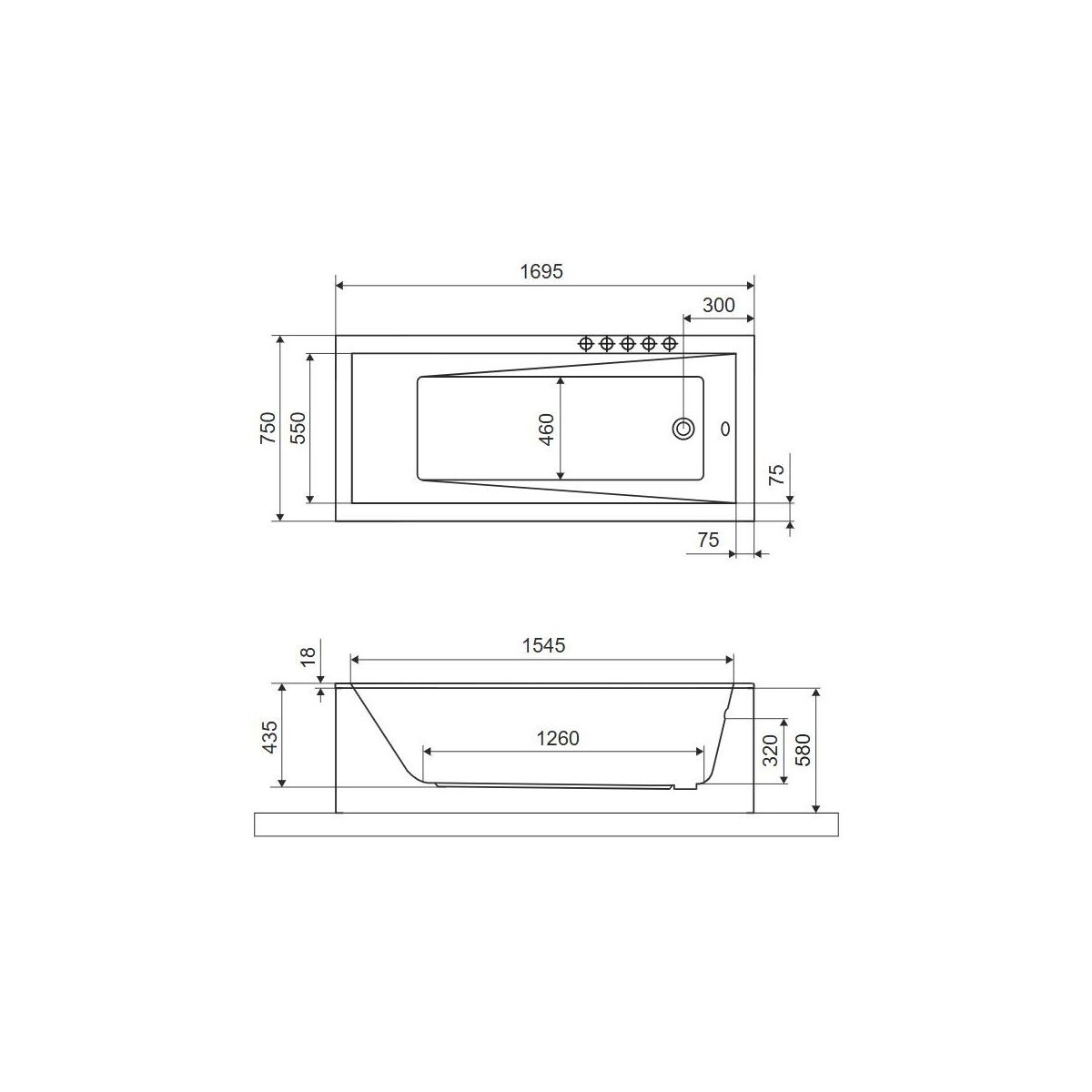 Excellent Wave bañera rectangular slim 169.5x75 cm blanco WAEX.WAV170.75WHS