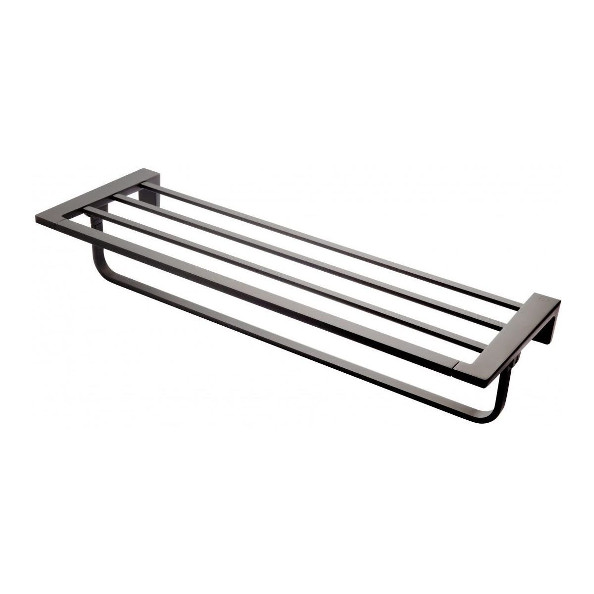 El toallero con estante tiene una forma austera y sencilla, basada en un motivo rectangular, pero rota por líneas delicadas y aerodinámicas. El acabado en negro le da un toque único e individual. Combinará bien con otros accesorios de baño negros, en composiciones que van de lo clásico a lo industrial. Este es un ejemplo de solución funcional dos en uno. El práctico estante es un buen lugar para las toallas de repuesto, y en el riel inferior puede colgar cómodamente la toalla que esté utilizando en ese momento.