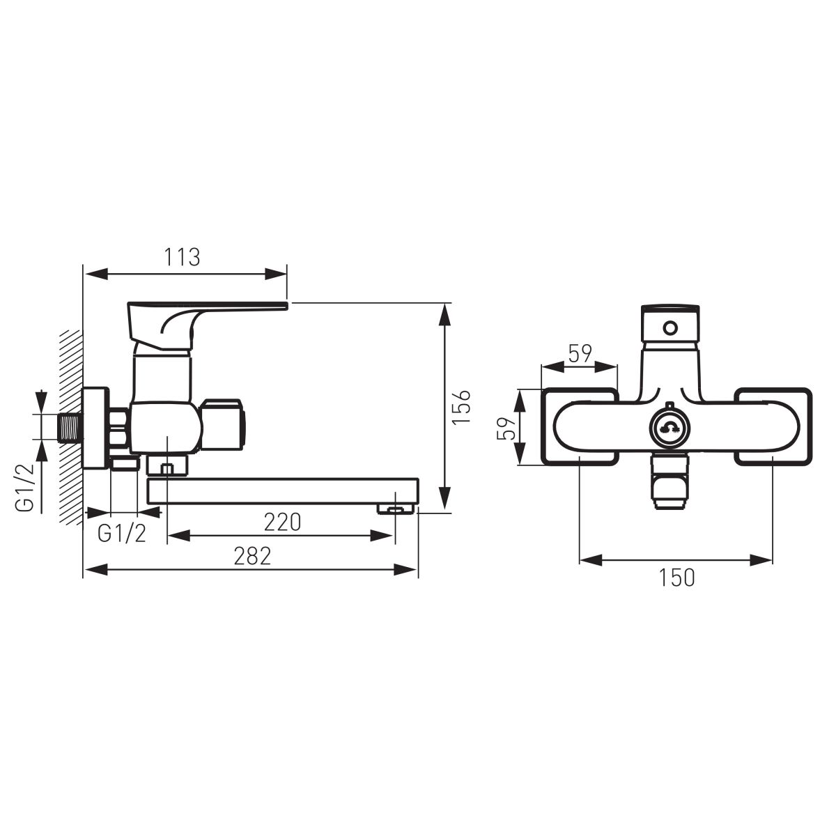 - conexión excéntrica G1/2, distancia 150 ± 20 mm
