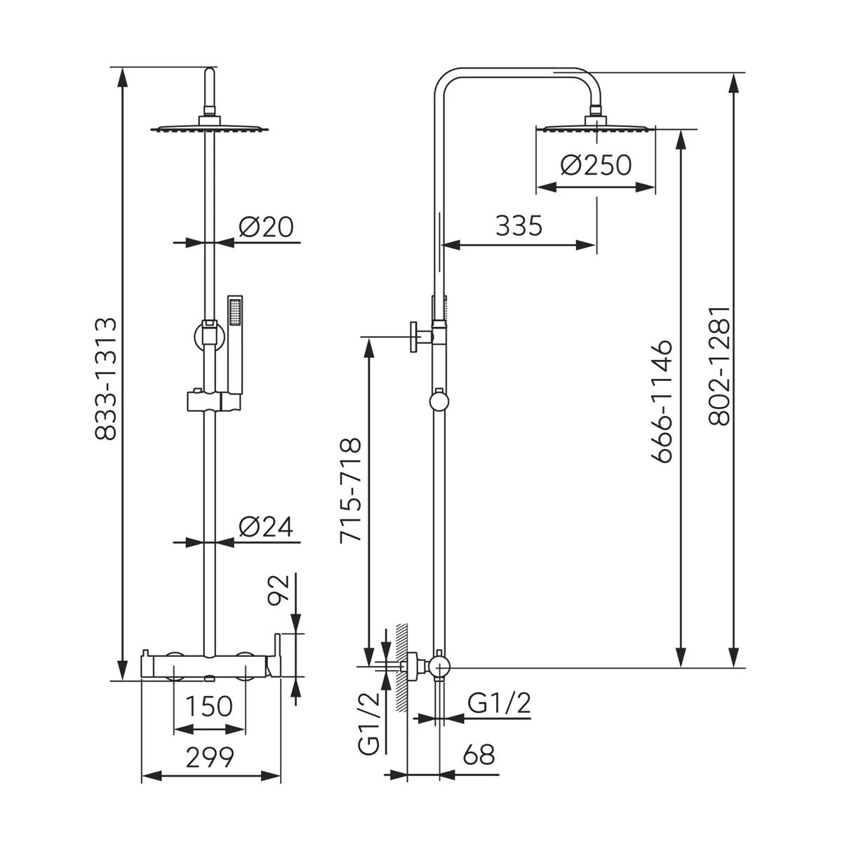 - Dimensiones del cabezal de la ducha [mm]: 250