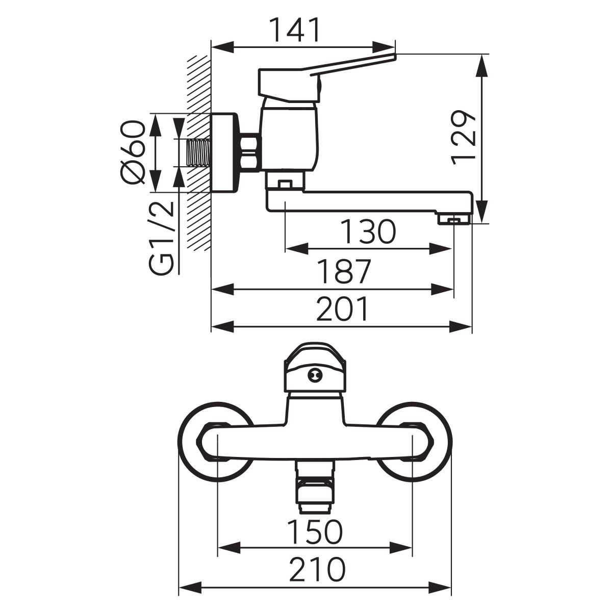 Ferro Isso grifo para lavabo a pared cromo BIS3