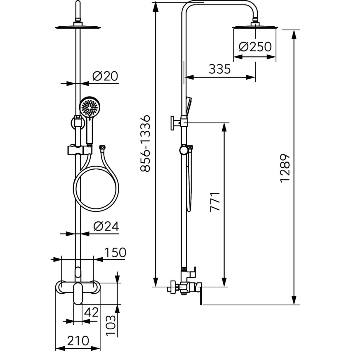 - Altura del brazo de la ducha [mm]: 856-1336