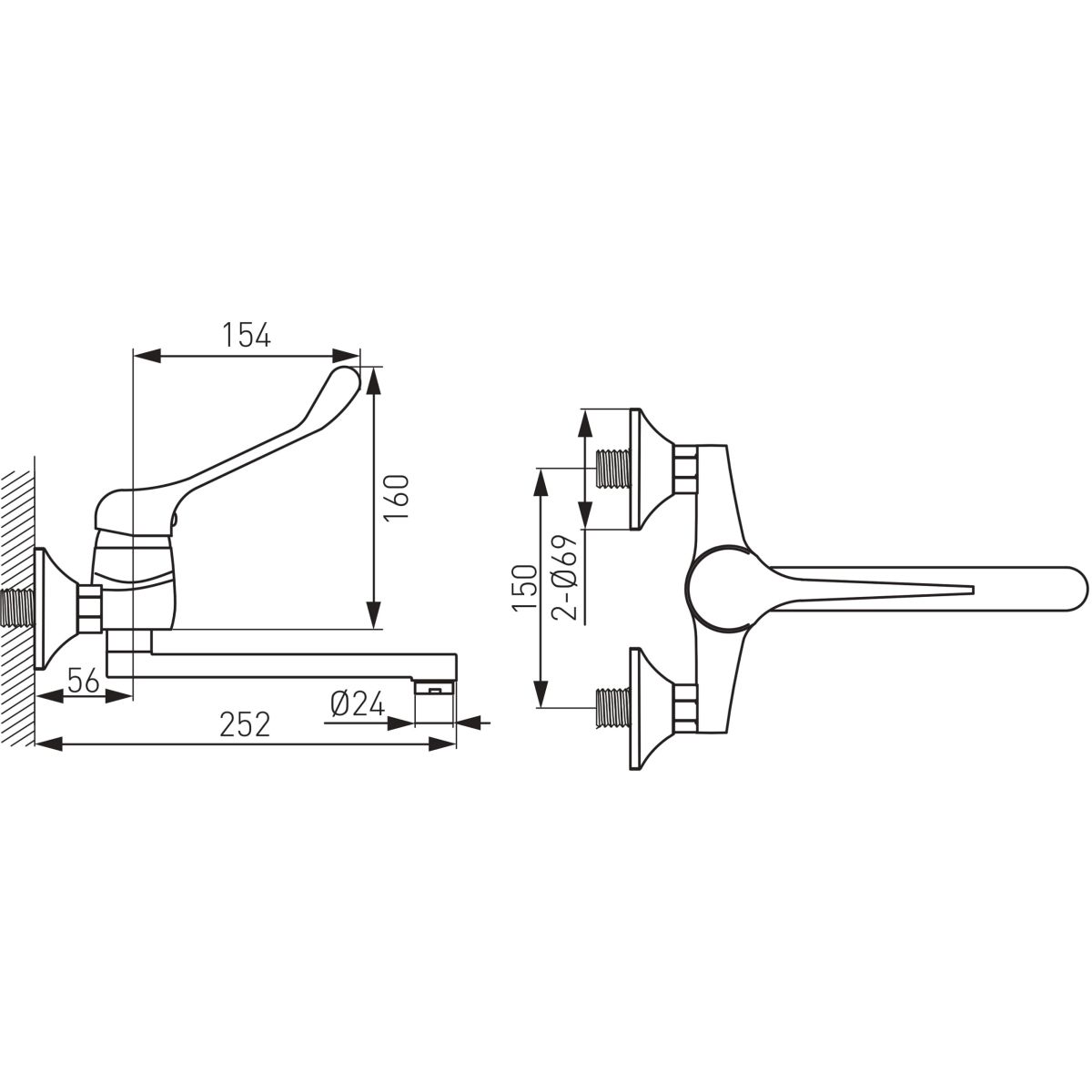 Ferro Vasto Medico grifo de cocina a pared cromo BVAM5