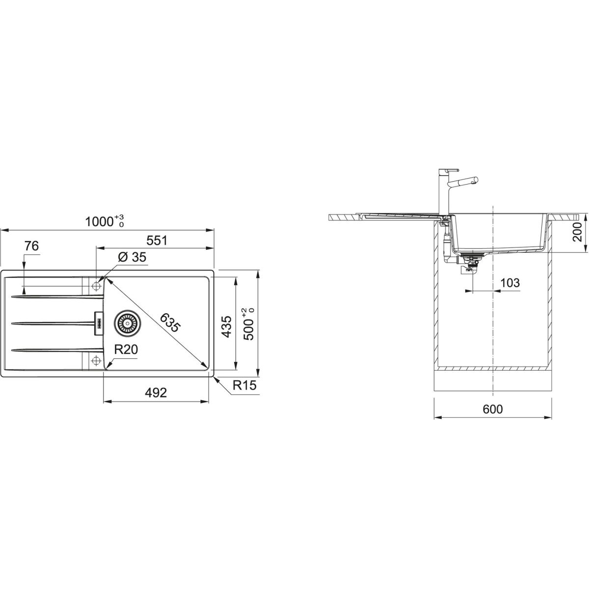 Franke Centro fregadero de granito 100x50 cm blanco 114.0687.331
