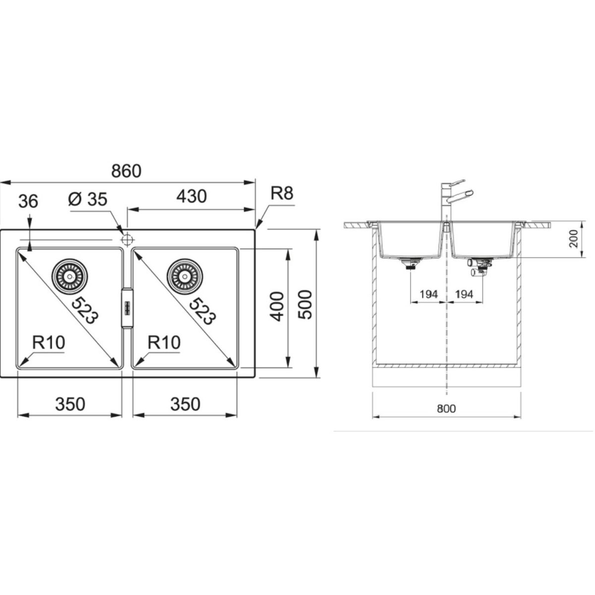 Franke Sirius 2.0 fregadero tectonite 86x50 cm blanco 143.0618.690