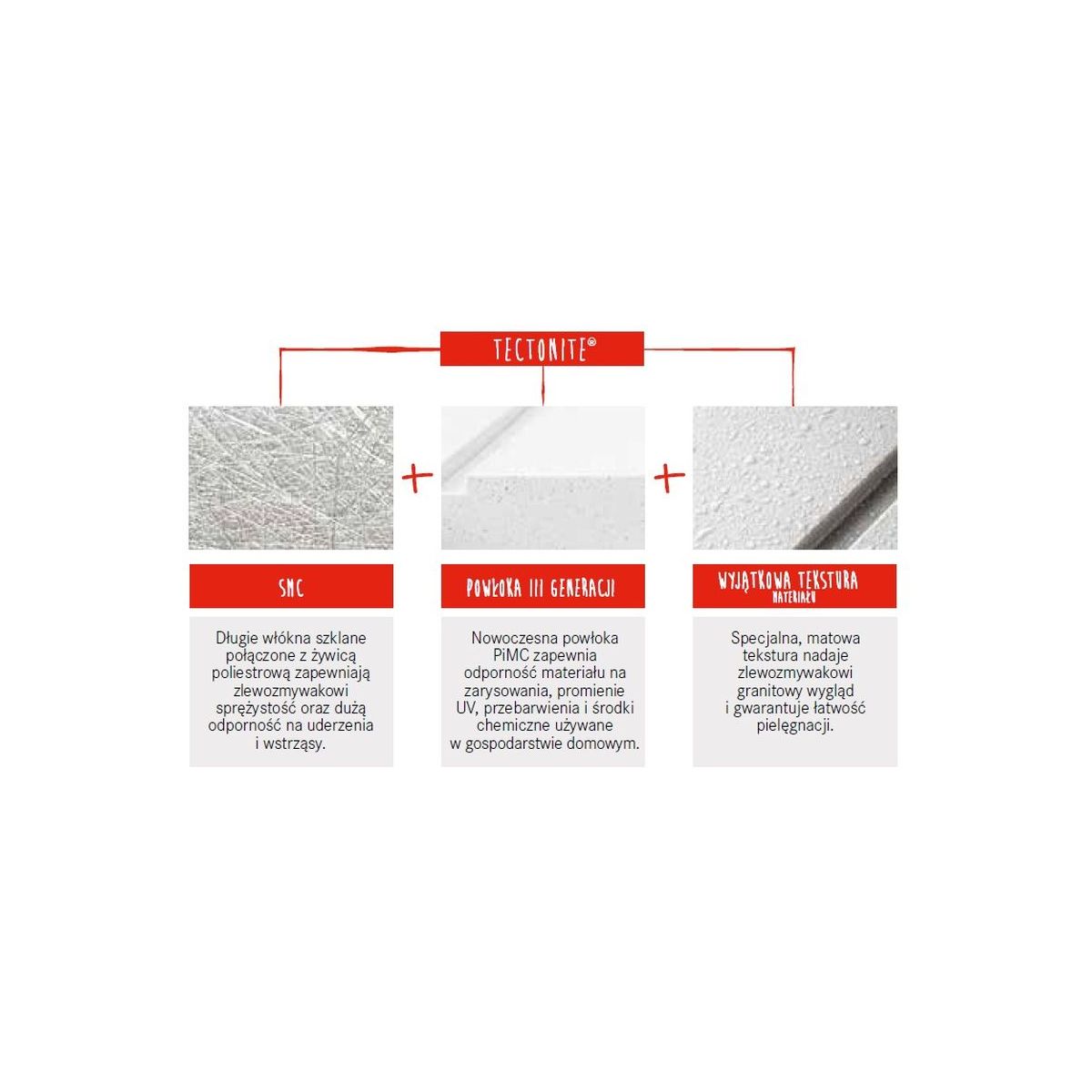 - Tectonite® es un material sintético innovador y patentado por Franke que consiste en largas fibras de vidrio, un revestimiento PiMC de alta tecnología y una textura mate única