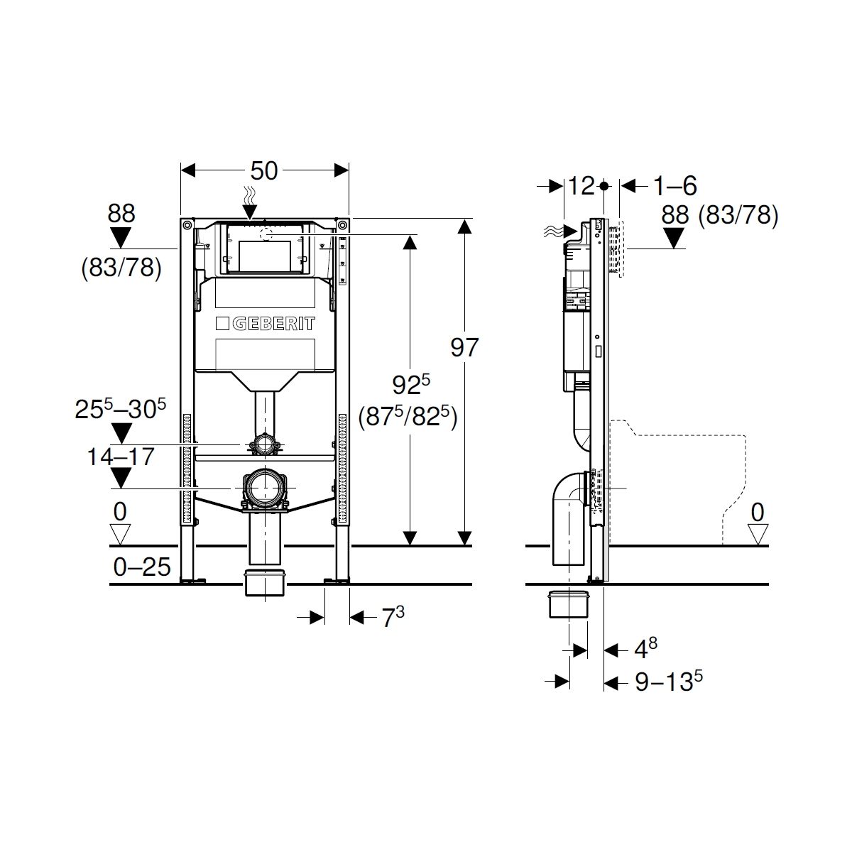 - con chapa extraíble para fijación lateral sobre elementos de perfiles metálicos o de madera o sobre elementos estructurales Geberit Duofix