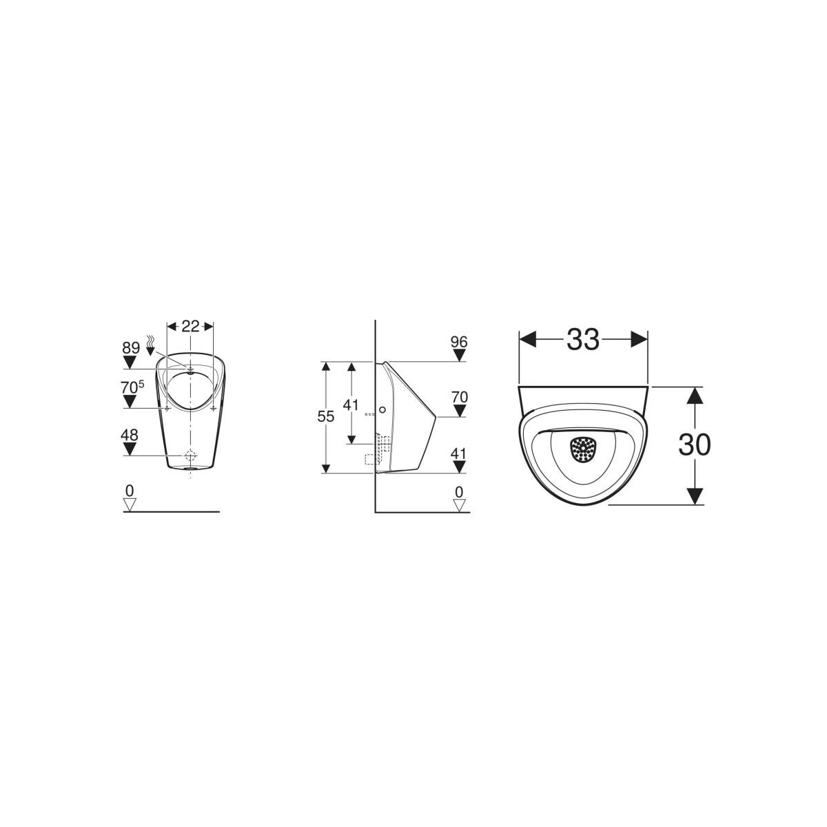 - tasa garantizada de descarga de urinario de 0,5 litros de agua por descarga, conforme a EN 13407