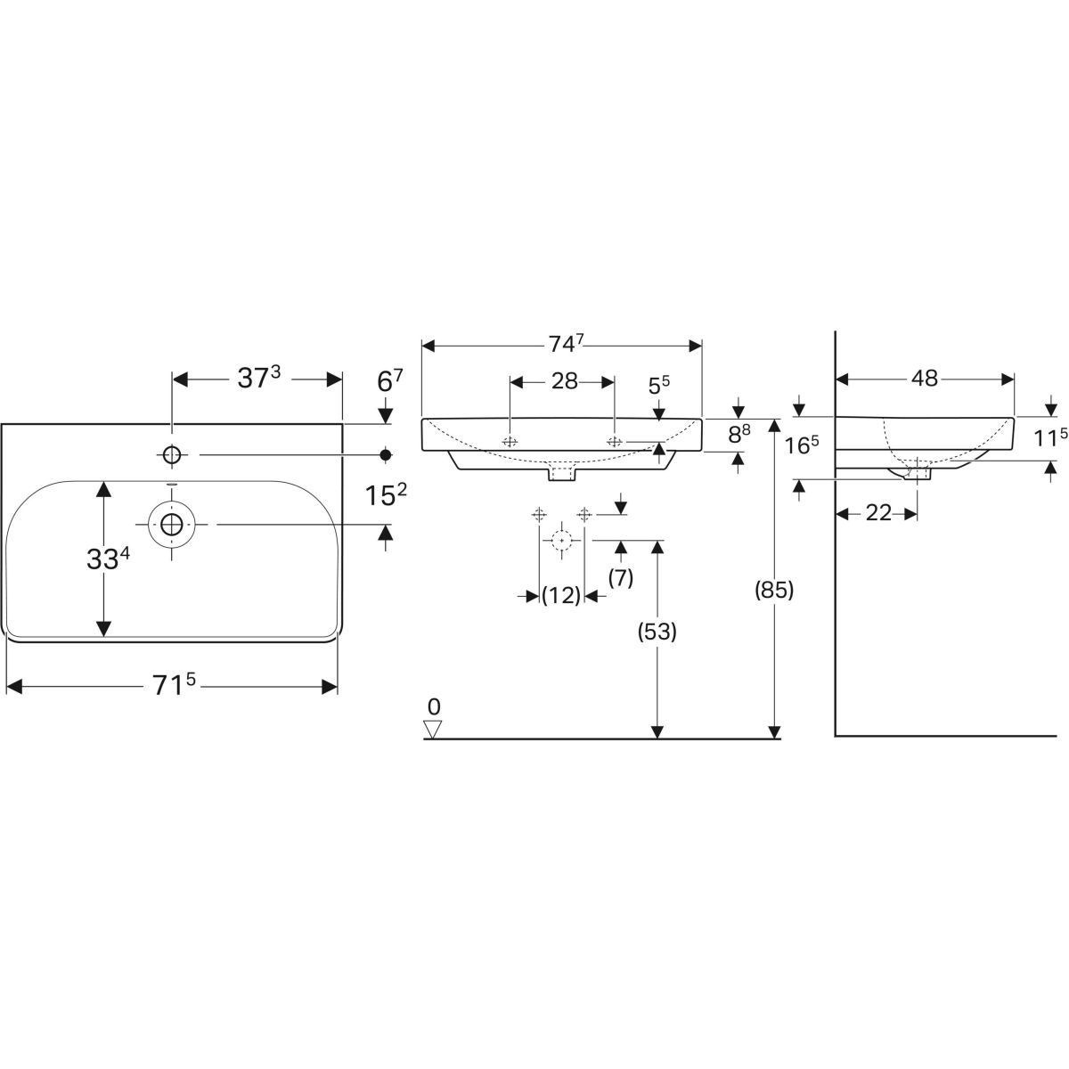 Geberit Smyle Square lavabo 75x48 cm rectangular clásico-para mueble blanco 500.249.01.8