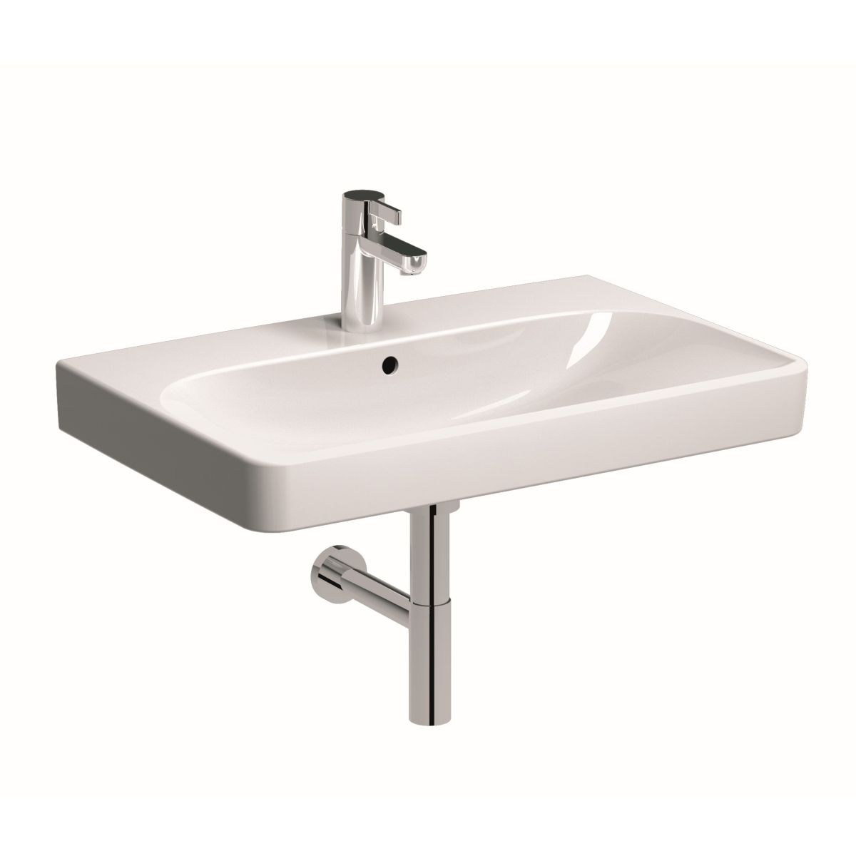 El lavabo Geberit Smyle es una sugerencia para cuartos de baño grandes y espaciosos en los que la funcionalidad es importante. Ha sido fabricado con cerámica de la más alta calidad, lo que se refleja tanto en la durabilidad del lavabo como en su elegante diseño. El lavabo tiene un orificio para el grifo, por lo que puede elegir cualquier tipo de grifería. El rebosadero evitará que el lavabo se desborde e inunde la habitación. ¿Quiere disfrutar del confort en cada momento de su día? El lavabo Geberit Smyle es el producto que lo hará posible.