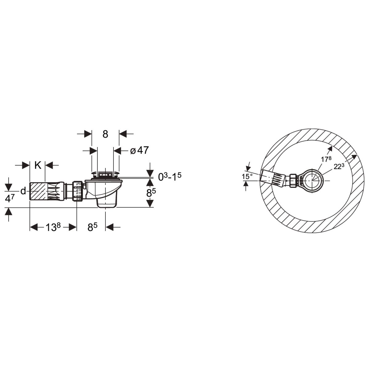 - desagüe con rótula hasta 15°.