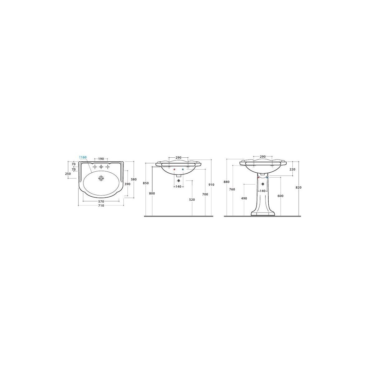 Globo Paestum lavabo 71x57 cm semicircular clásico-empotrado blanco PA006.BI