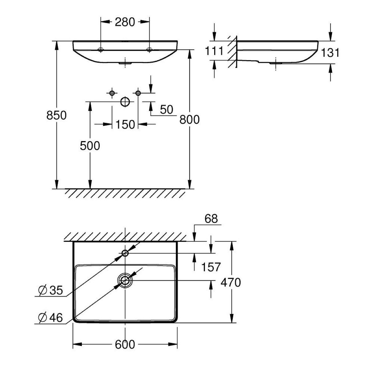 Grohe Euro Ceramic lavabo 60x47 cm rectangular clásico blanco 102418SH00
