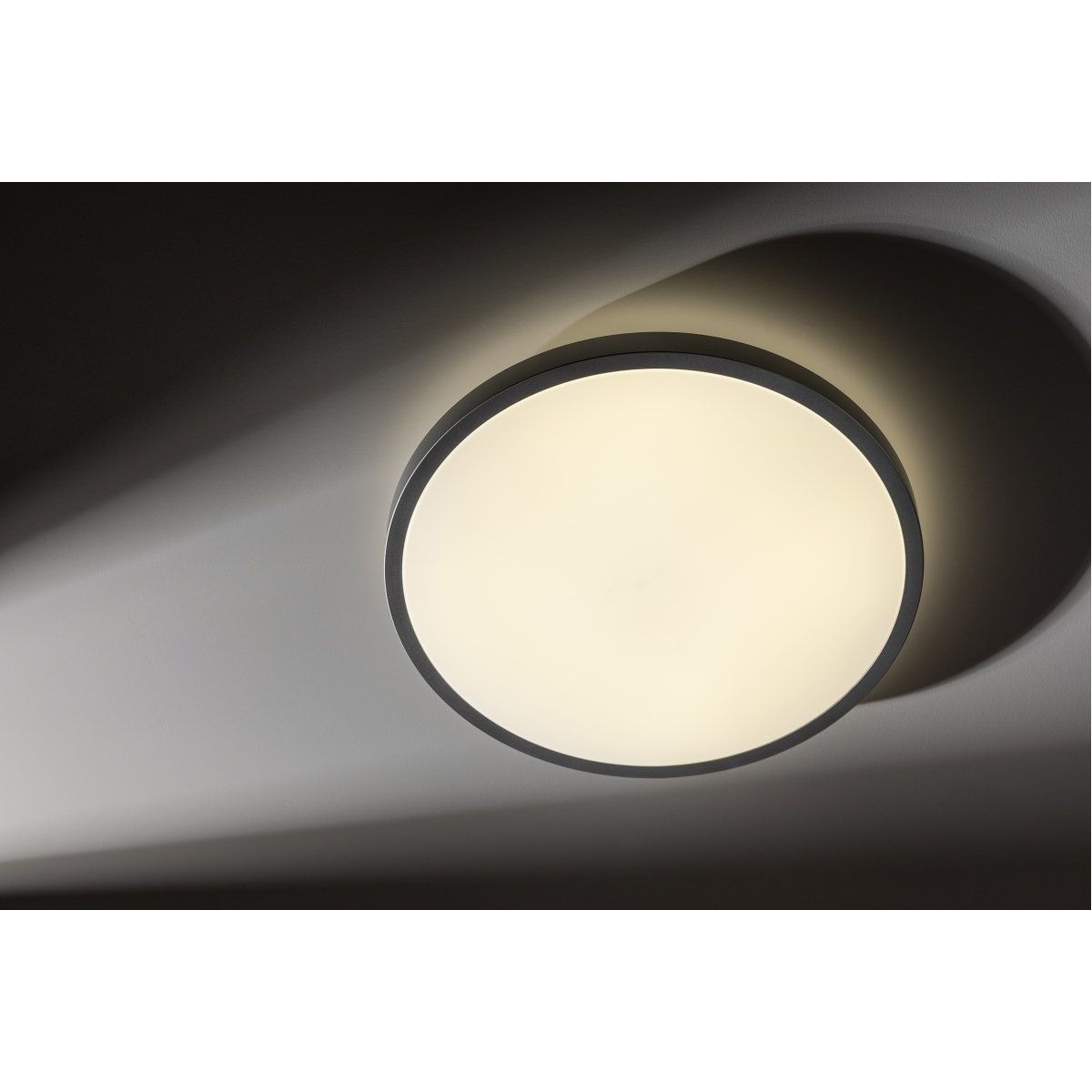 La fuente LED de 32 W integrada emite una luz de 3000 K, que crea un ambiente acogedor. Un flujo luminoso de 2560 lm y un amplio ángulo de haz de 120° garantizan una iluminación uniforme de la zona elegida, por ejemplo, en la cocina, el salón o el dormitorio.