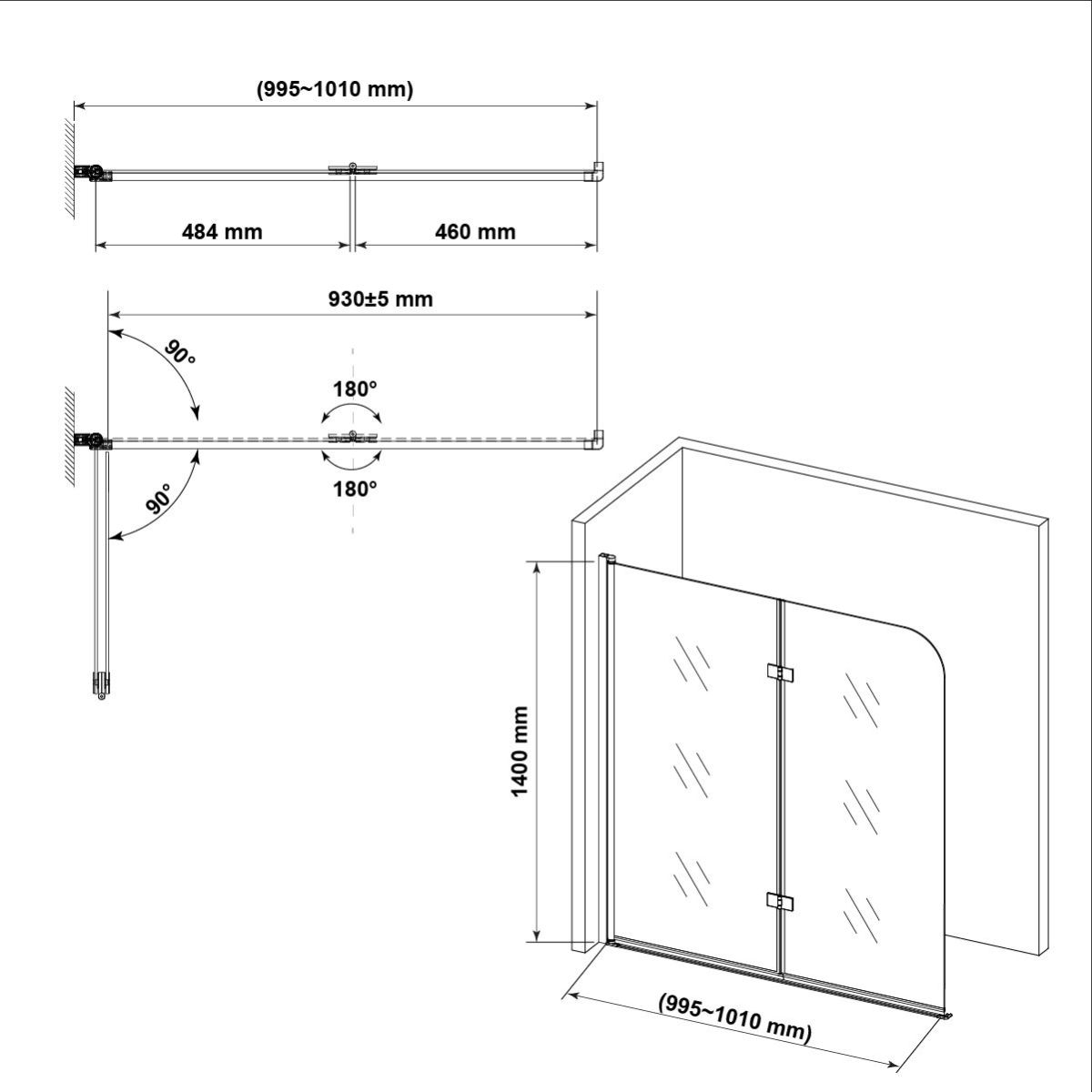 Hagser Anke mampara de bañera 100 cm dos piezas negro mate/vidrio transparente HGR70000023