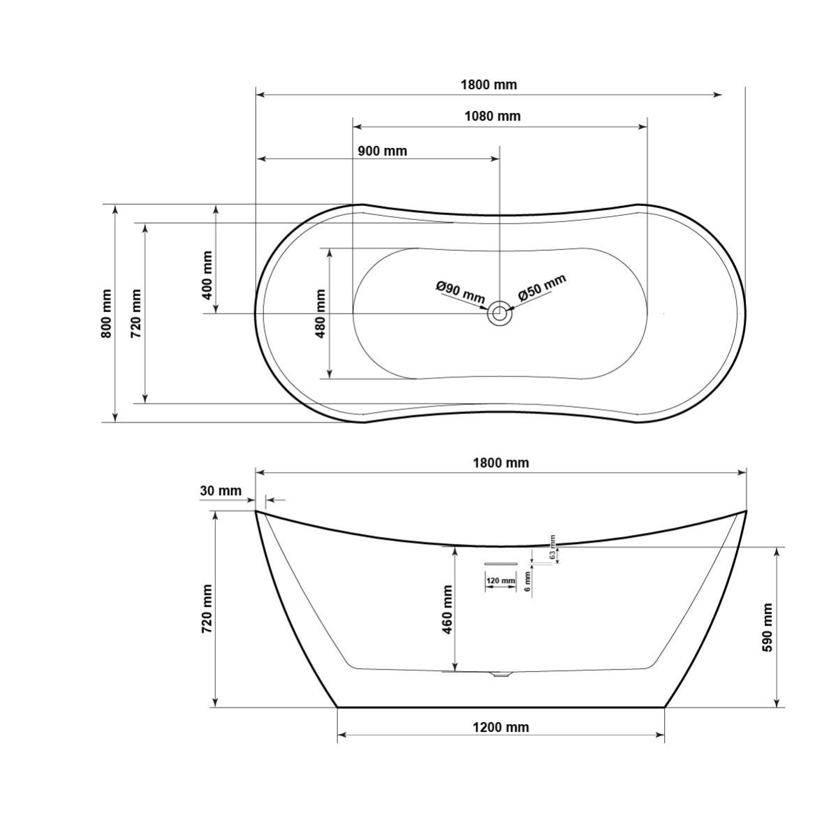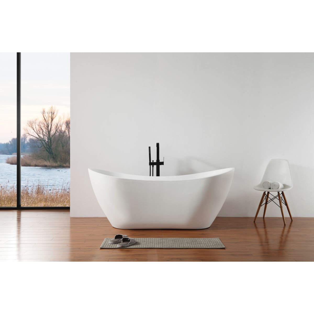 - la bañera exenta Hagser tiene un sistema integrado de desagüe y rebosadero con un rebosadero ranurado minimalista