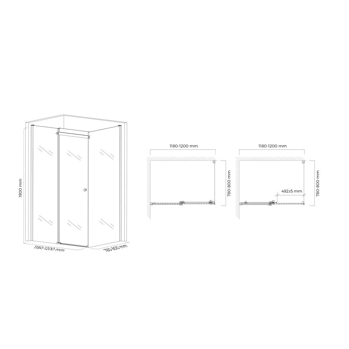 Las dimensiones de las ilustraciones son las dimensiones de la cabina medidas desde el interior (desde la esquina) hasta el final del perfil de la cabina (no el centro del cristal).