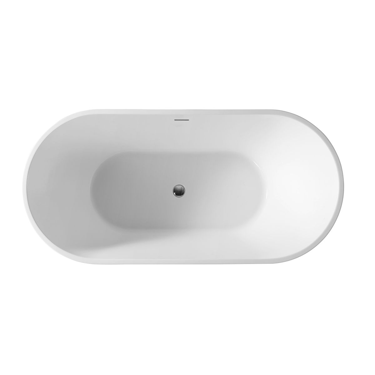 - la bañera exenta Hagser tiene un sistema integrado de desagüe y rebosadero con un rebosadero ranurado minimalista