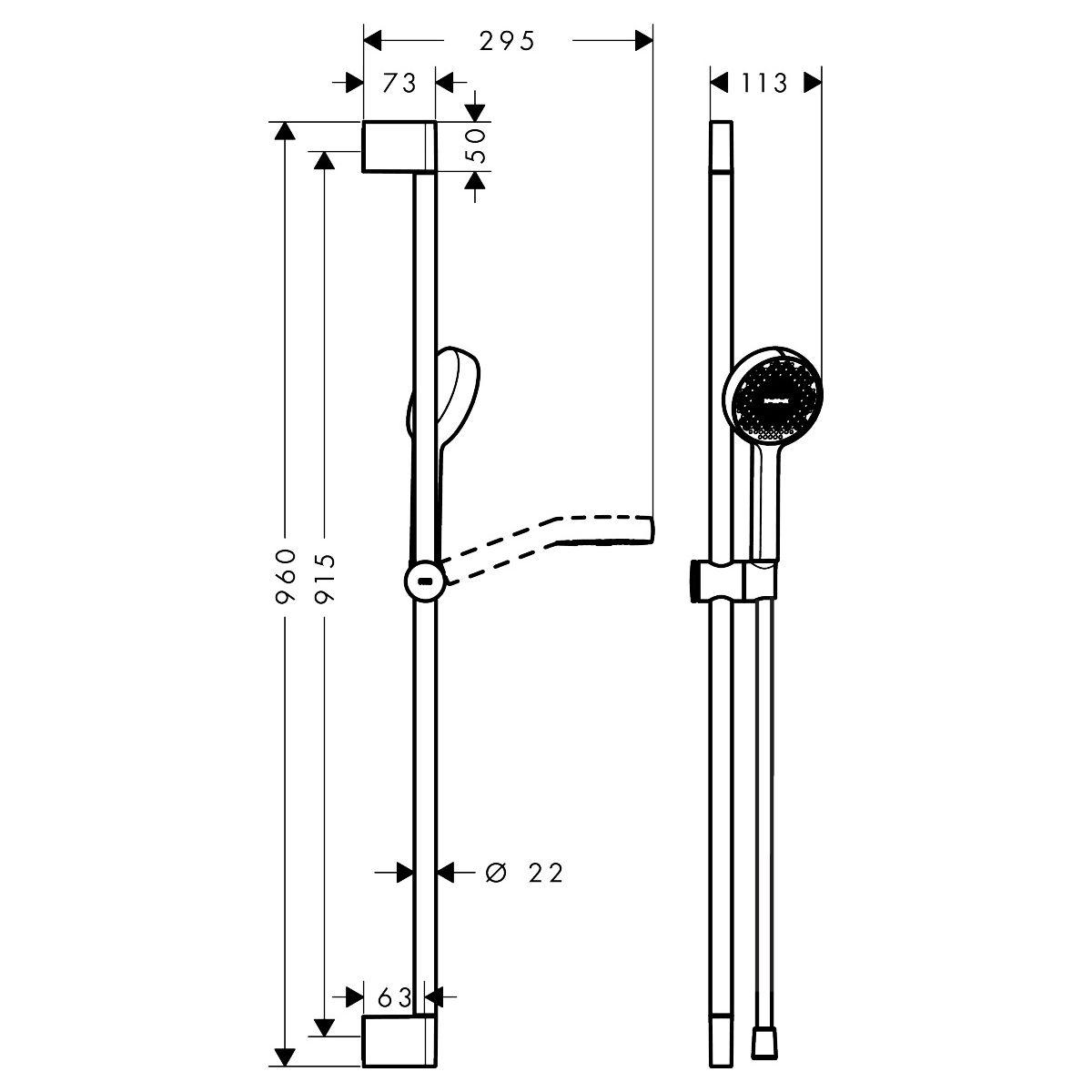 - La original barra de ducha hansgrohe Unica (0,90 m) proporciona un confort excepcional