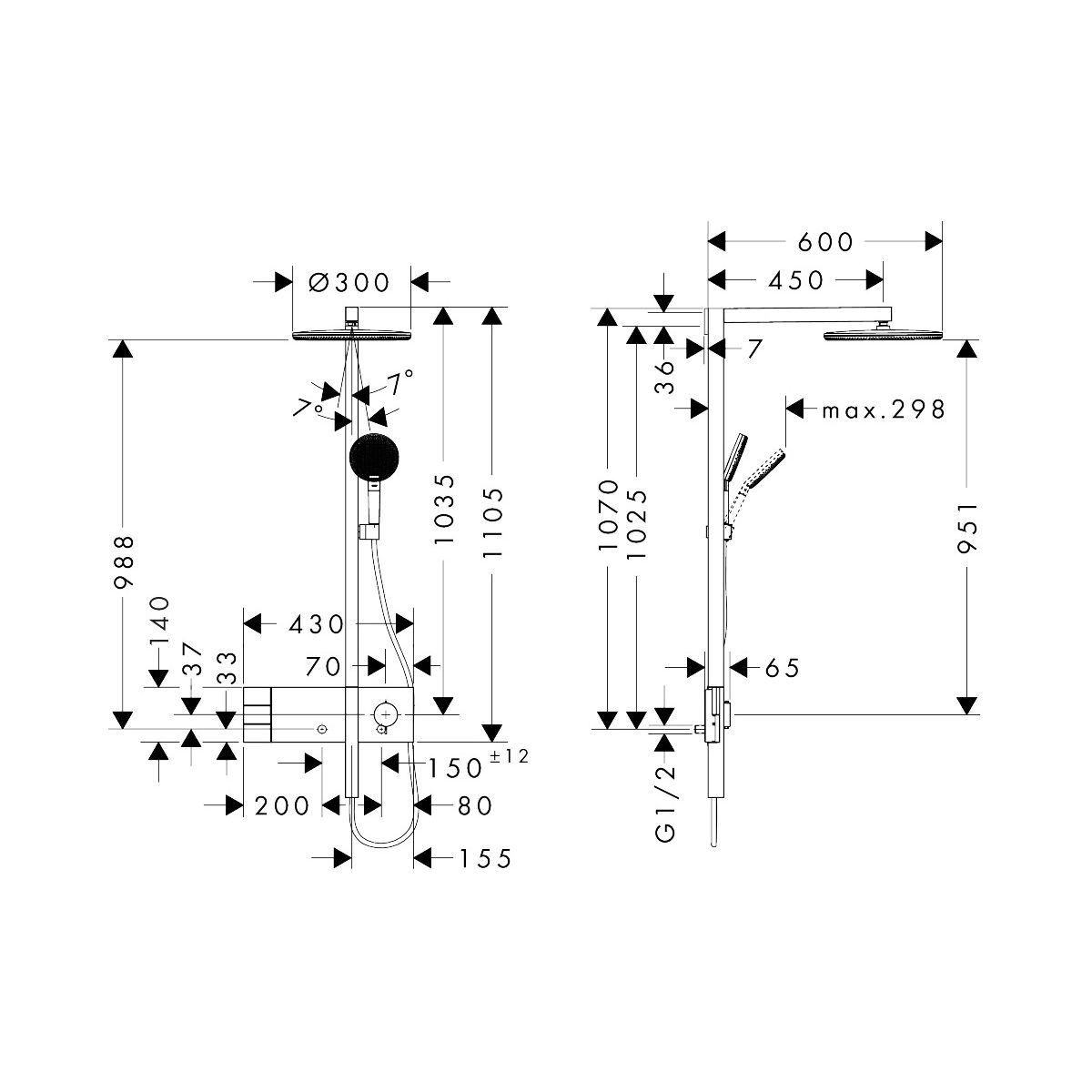 Hansgrohe Raindance Alive S conjunto de ducha a pared con termostato con rociador con efecto lluvia negro 24596670