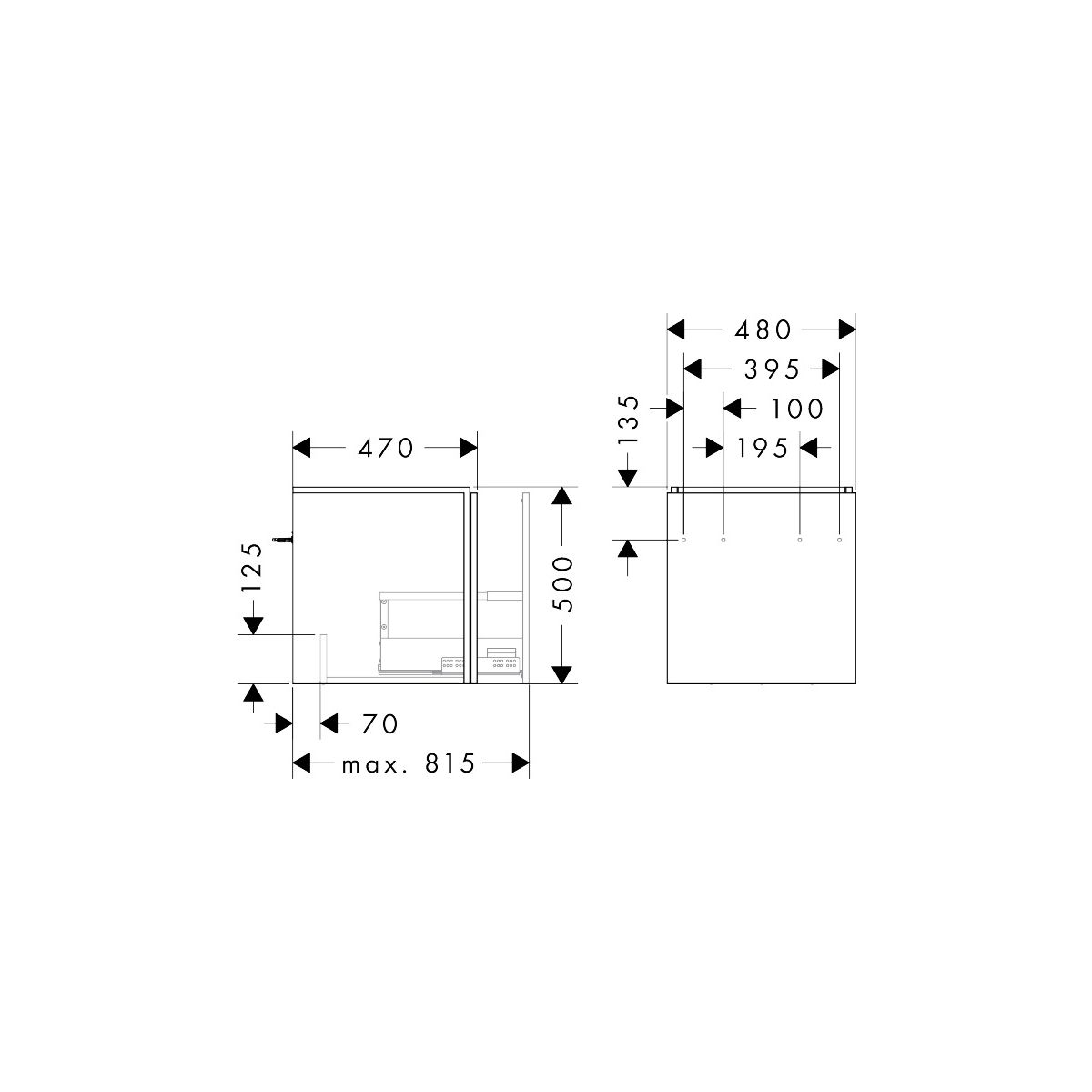 Xilesa E de hansgrohe combina diseño y funcionalidad para proporcionar una experiencia cómoda e impresionante. El cajón se abre fácilmente gracias a la elegante ranura de sombra. No es necesario utilizar tiradores apretados. El mueble de lavabo ofrece el máximo espacio de almacenamiento - gracias al sifón que ahorra espacio (se vende por separado: #54235000), ¡no es necesario recortar el sifón!