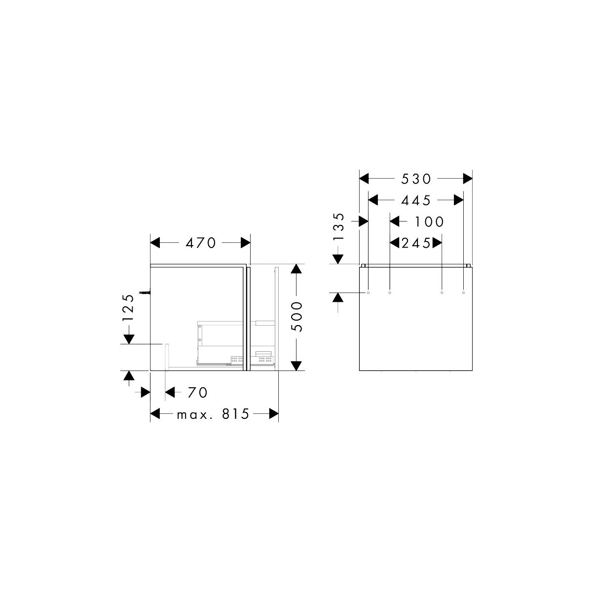 Xilesa E de hansgrohe combina diseño y funcionalidad para proporcionar una experiencia cómoda e impresionante. El cajón se abre fácilmente gracias a la elegante ranura de sombra. No es necesario utilizar tiradores apretados. El mueble de lavabo ofrece el máximo espacio de almacenamiento - gracias al sifón que ahorra espacio (se vende por separado: #54235000), ¡no es necesario recortar el sifón!