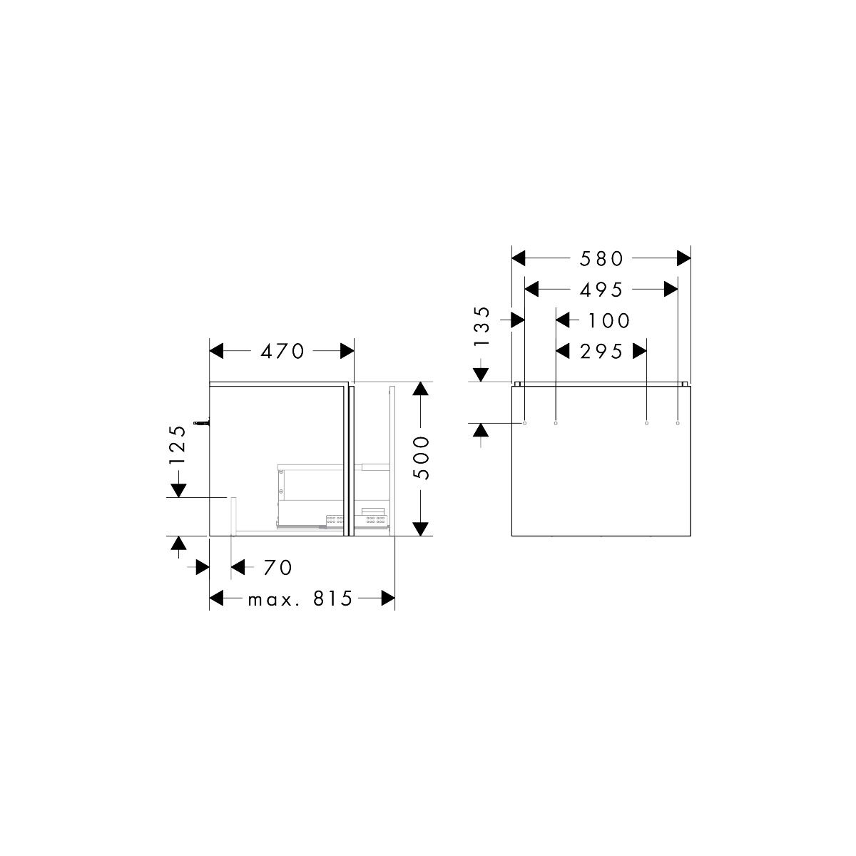 Xilesa E de hansgrohe combina diseño y funcionalidad para proporcionar una experiencia cómoda e impresionante. El cajón se abre fácilmente gracias a la elegante ranura de sombra. No es necesario utilizar tiradores apretados. El mueble de lavabo ofrece el máximo espacio de almacenamiento - gracias al sifón que ahorra espacio (se vende por separado: #54235000), ¡no es necesario recortar el sifón!