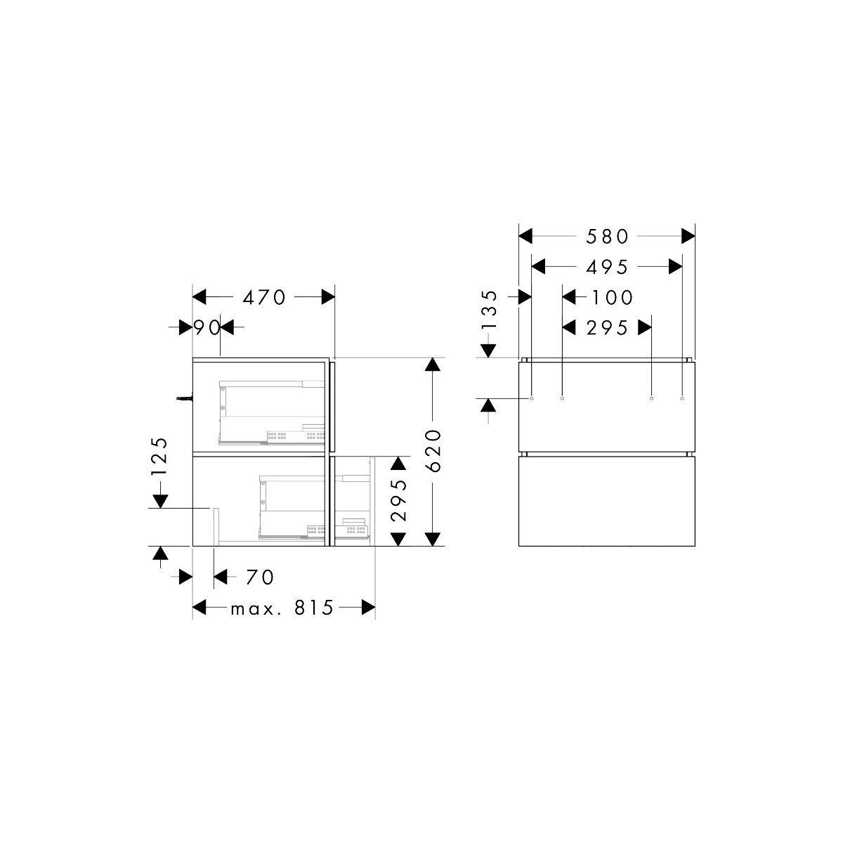 Xilesa E de hansgrohe combina diseño y funcionalidad para proporcionar una experiencia cómoda e impresionante. Los cajones se abren fácilmente gracias a la función Push-Open. No es necesario utilizar tiradores apretados. El mueble de lavabo ofrece el máximo espacio de almacenamiento - gracias al sifón que ahorra espacio (se vende por separado: #54235000), ¡no es necesario recortar el sifón!