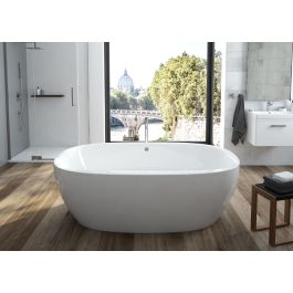 La bañera ovalada exenta completa incluye: sistema de rebose integrado, sistema de desagüe con tapón Klick-Klack, manguera de instalación de conexión.