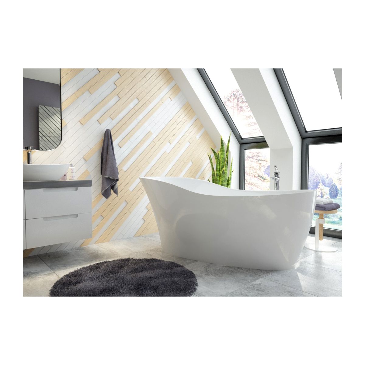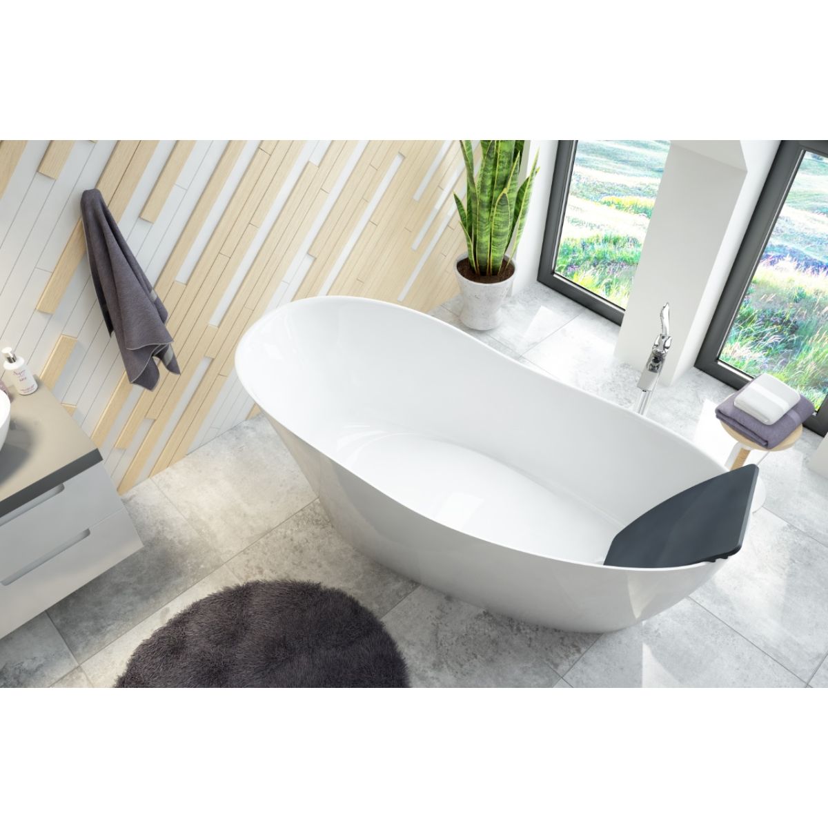 La bañera ovalada exenta completa incluye: sistema de rebose integrado, sistema de desagüe con tapón Klick-Klack, manguera de instalación de conexión.