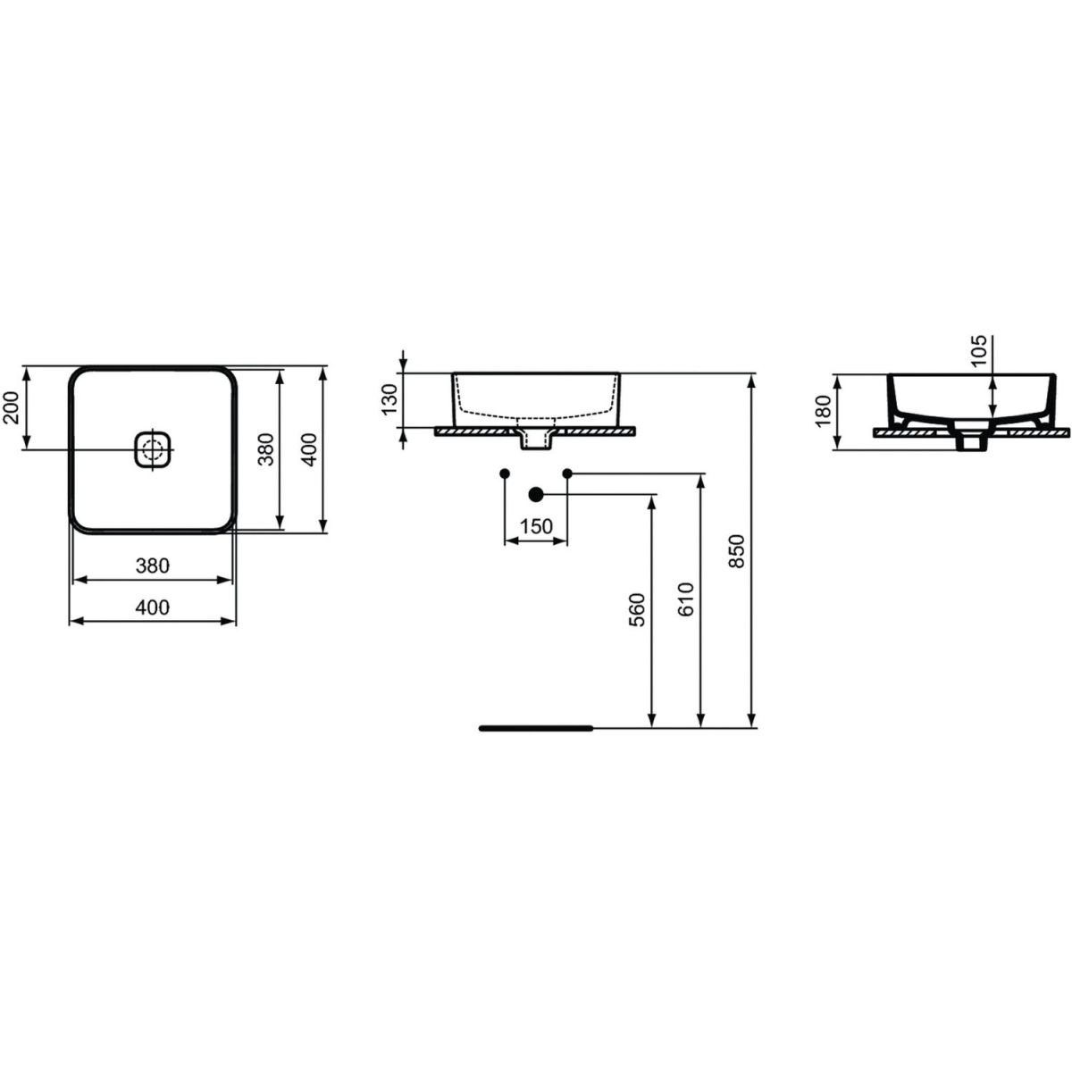 Ideal Standard Strada II lavabo 40x40 cm cuadrada sobre encimera blanco T296201
