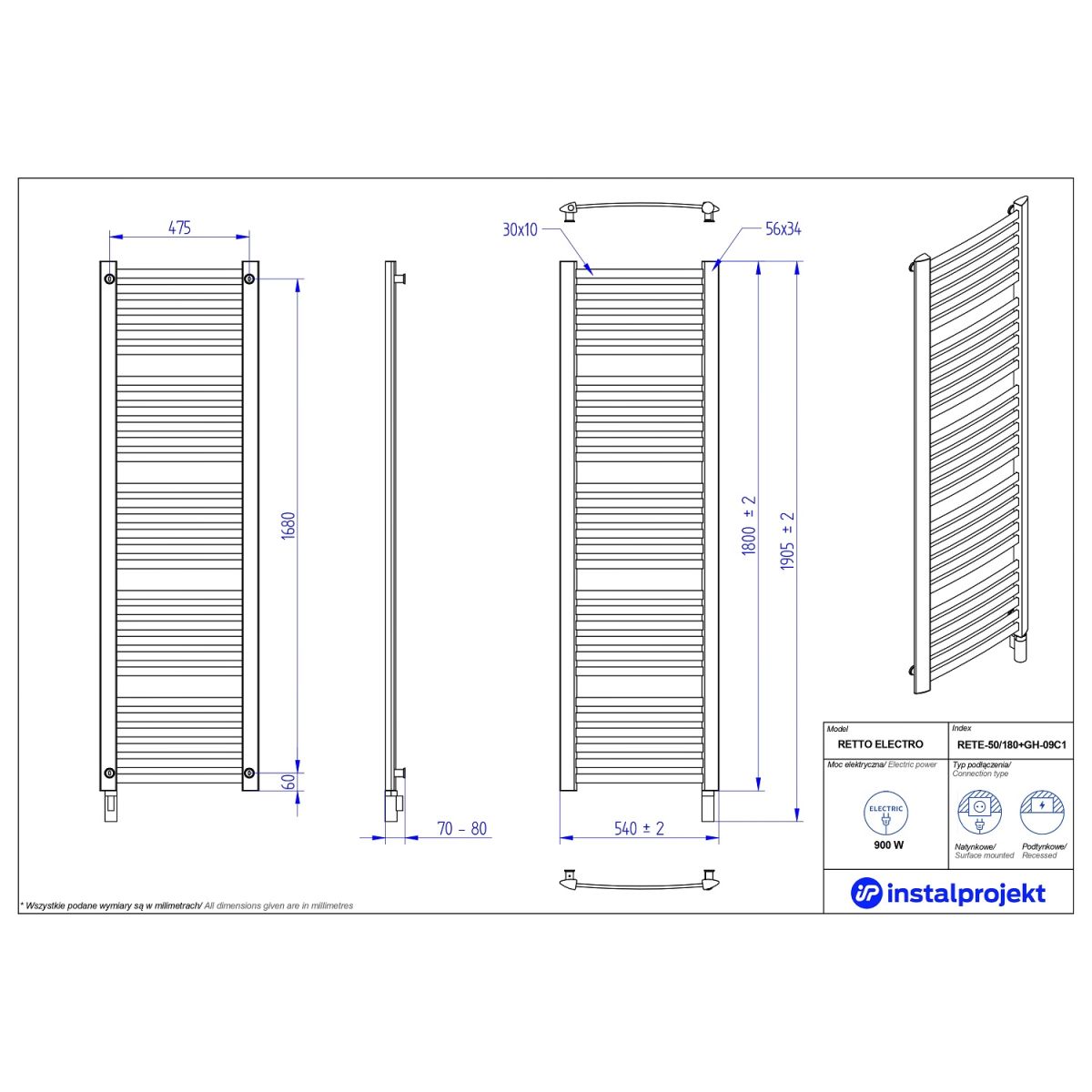 Retto Electro es un radiador de baño alimentado por una resistencia eléctrica. Gracias a esta tecnología, funciona siempre que es necesario, basta con conectarlo a la corriente. Gracias a su tecnología de calefacción patentada, consume poca energía y genera un calor eficaz. Es la solución ideal, especialmente en viviendas sin calefacción central, con calefacción por suelo radiante o techo radiante, pero sin espacio para secar la ropa. La instalación del radiador es sencilla y se puede realizar fácilmente por cuenta propia. Además, en caso de mudanza o reforma, se puede trasladar y montar fácilmente en un nuevo lugar. Es una solución elegante que garantiza comodidad y ahorro de energía.