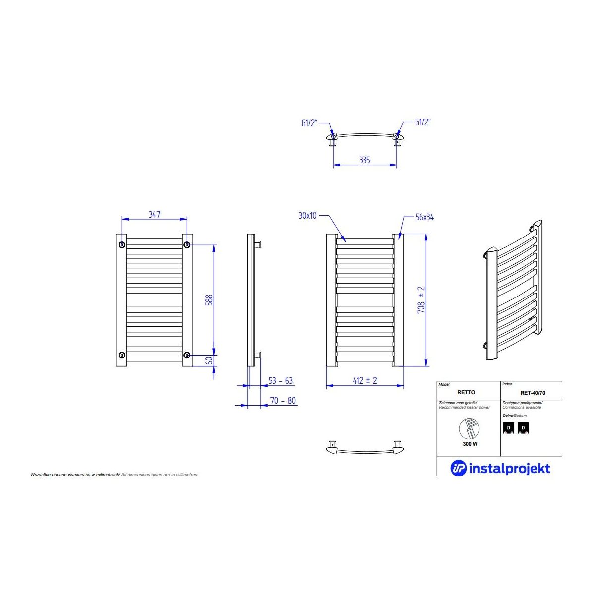 Instal Projekt Retto radiador de baño toallero 70.8x41.2 cm gris/grafito RET-40/70C12