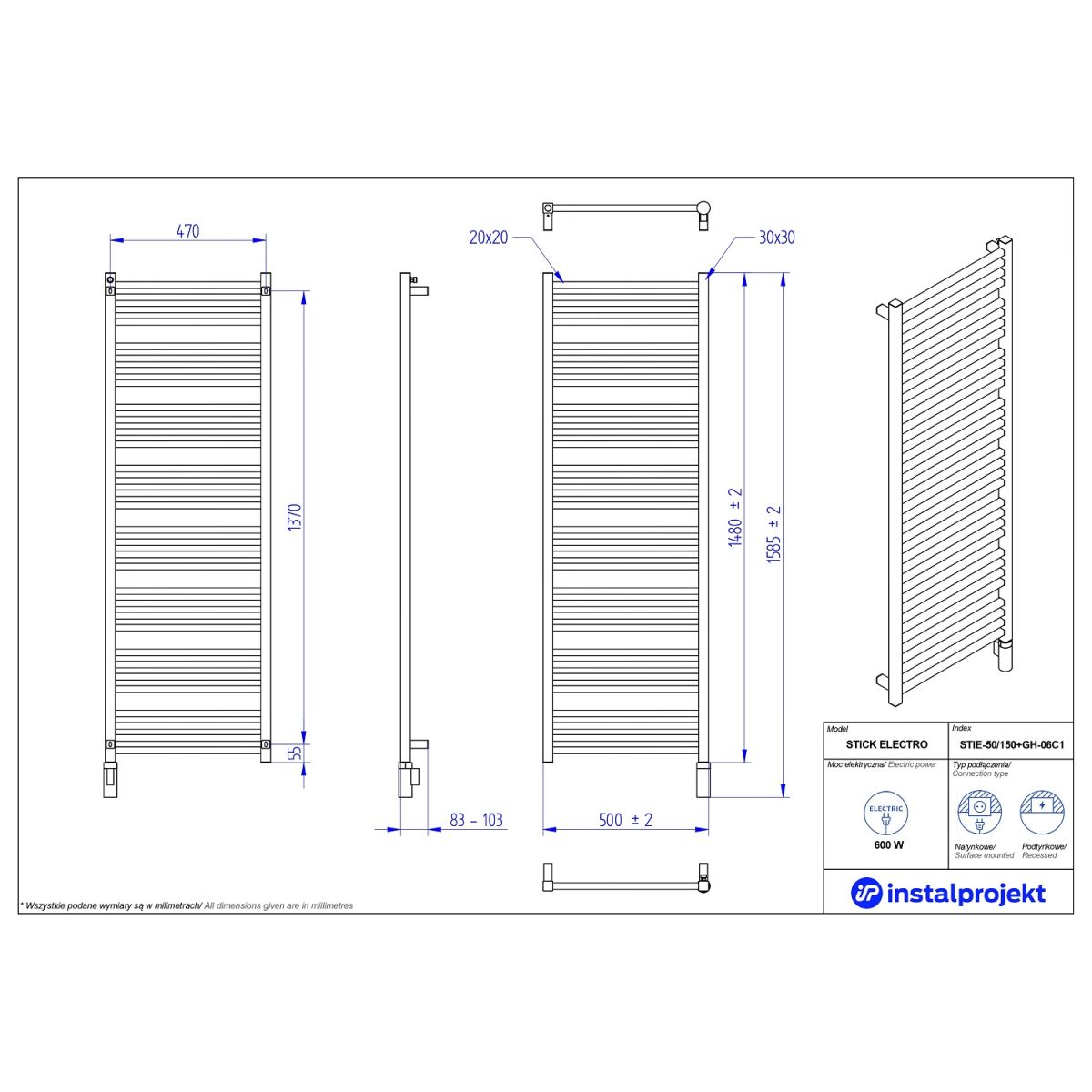Instal Projekt Stick Electro radiador eléctrico 148x50 cm blanco STIE-50/150C34+GH-06C1