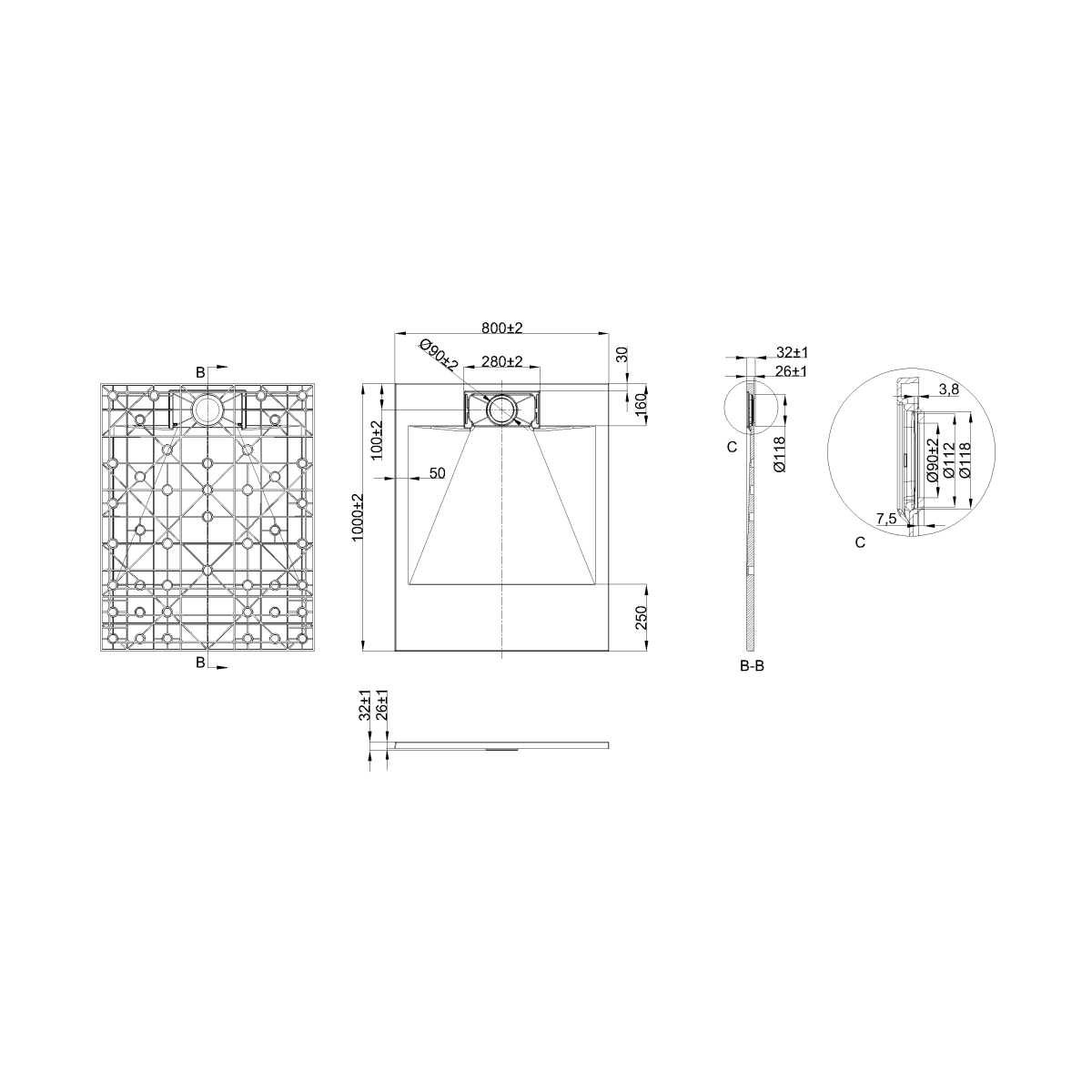 El plato de ducha ALVERO 80 × 100 cm ofrece un espacio de baño más amplio, ideal para relajarse a diario. Su perfil bajo (2,6 cm) y su elegante diseño lo convierten en una gran elección para baños modernos de estilo hotelero. La durabilidad del compuesto SMC y su resistencia a los rayos UV, la humedad y los detergentes garantizan la longevidad del producto. El desagüe situado en el lado más corto facilita la instalación en sistemas de fontanería estándar. Para combinar con el sifón Easy Clean (SU-AK-701) o el sifón Slim (SU-AK-702)