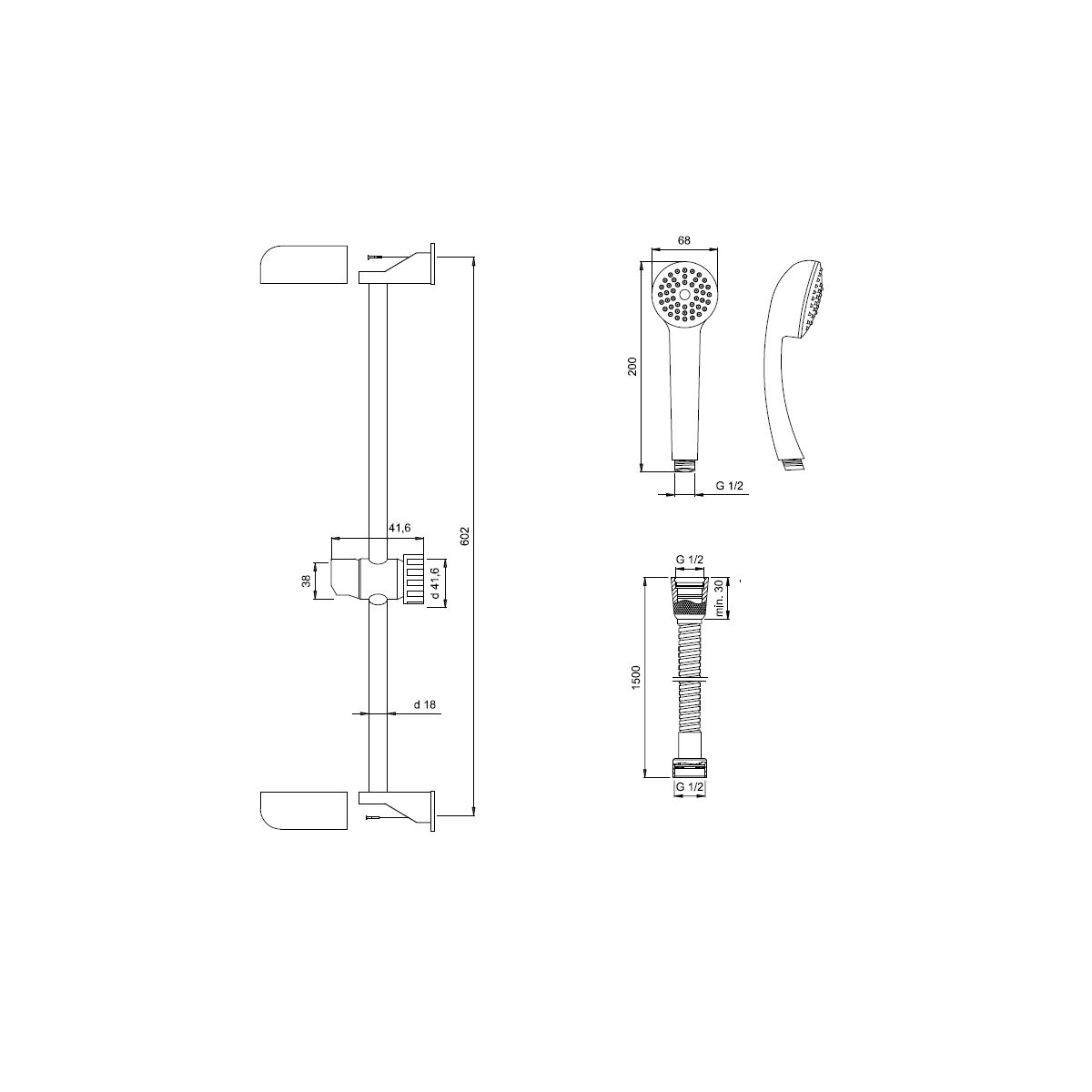 - Incluye: alcachofa de ducha, manguera de ducha, barra de ducha