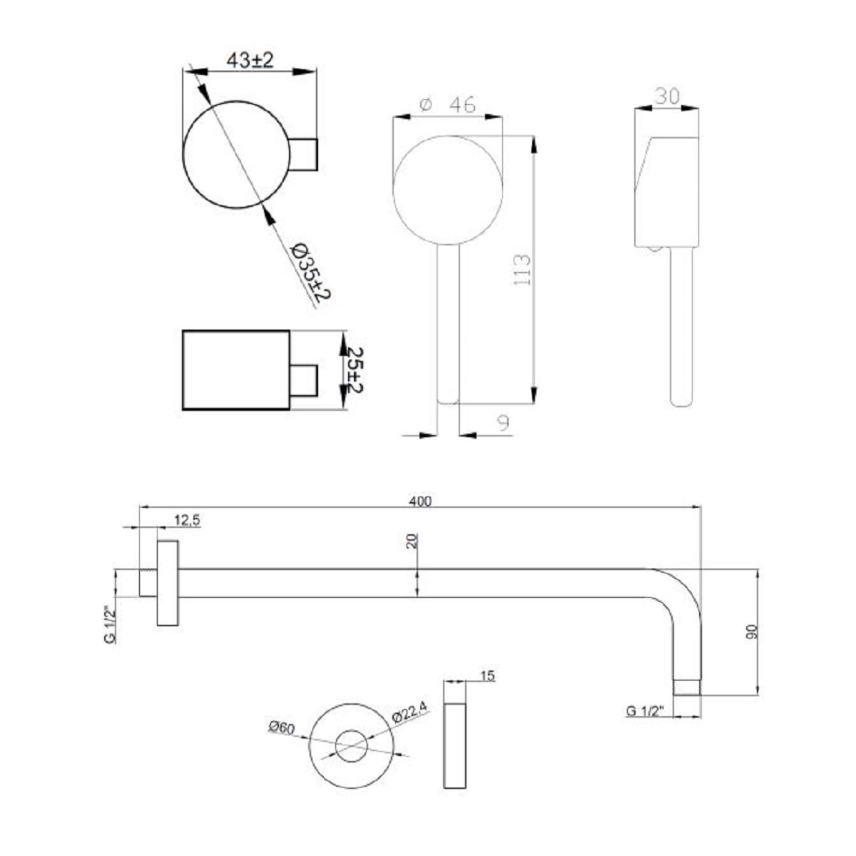 - longitud del brazo de ducha 40 cm
