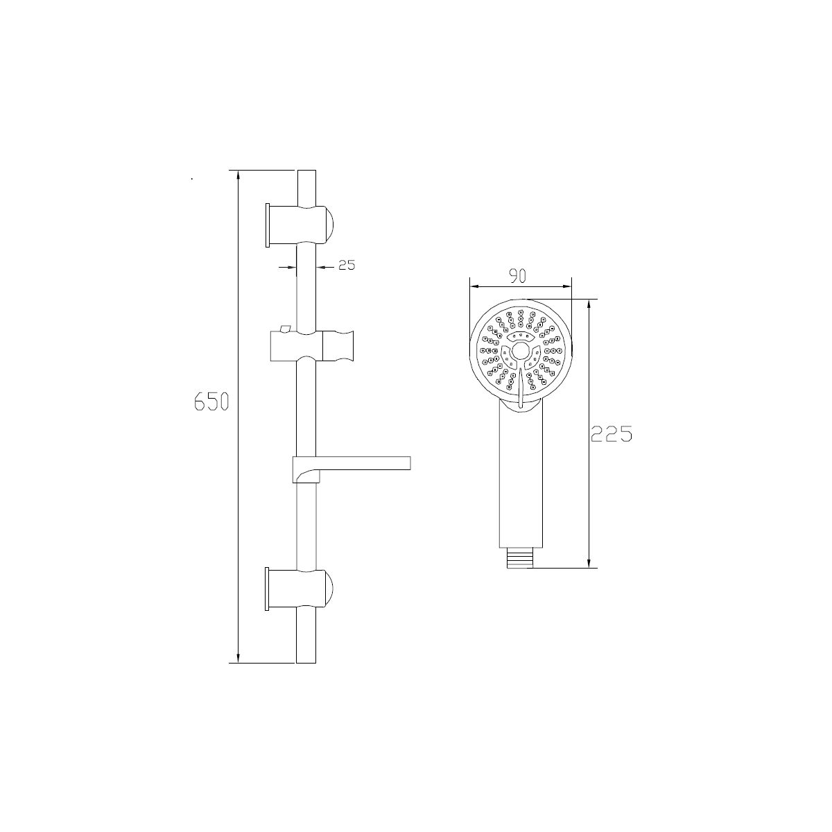 - Incluye: alcachofa de ducha, manguera de ducha, barra de ducha, jabonera