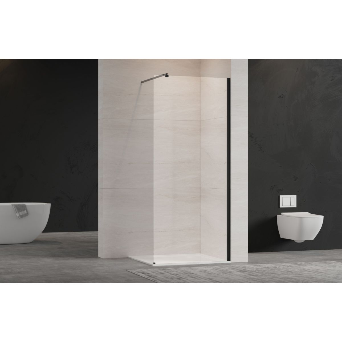 Invena mampara de ducha walk-in 110 cm negro semimate/vidrio transparente AK-32-111