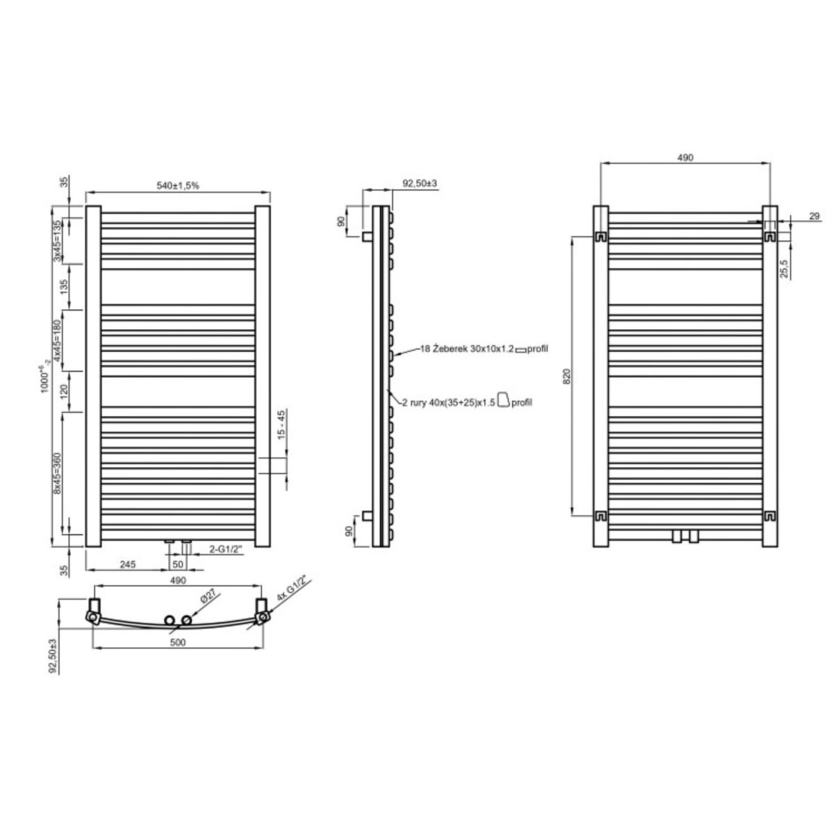 - universal y las variantes de conexión más comunes para cada modelo de radiador: medio inferior d50 - 50 mm, axial inferior 500 mm, rosca interior ½"