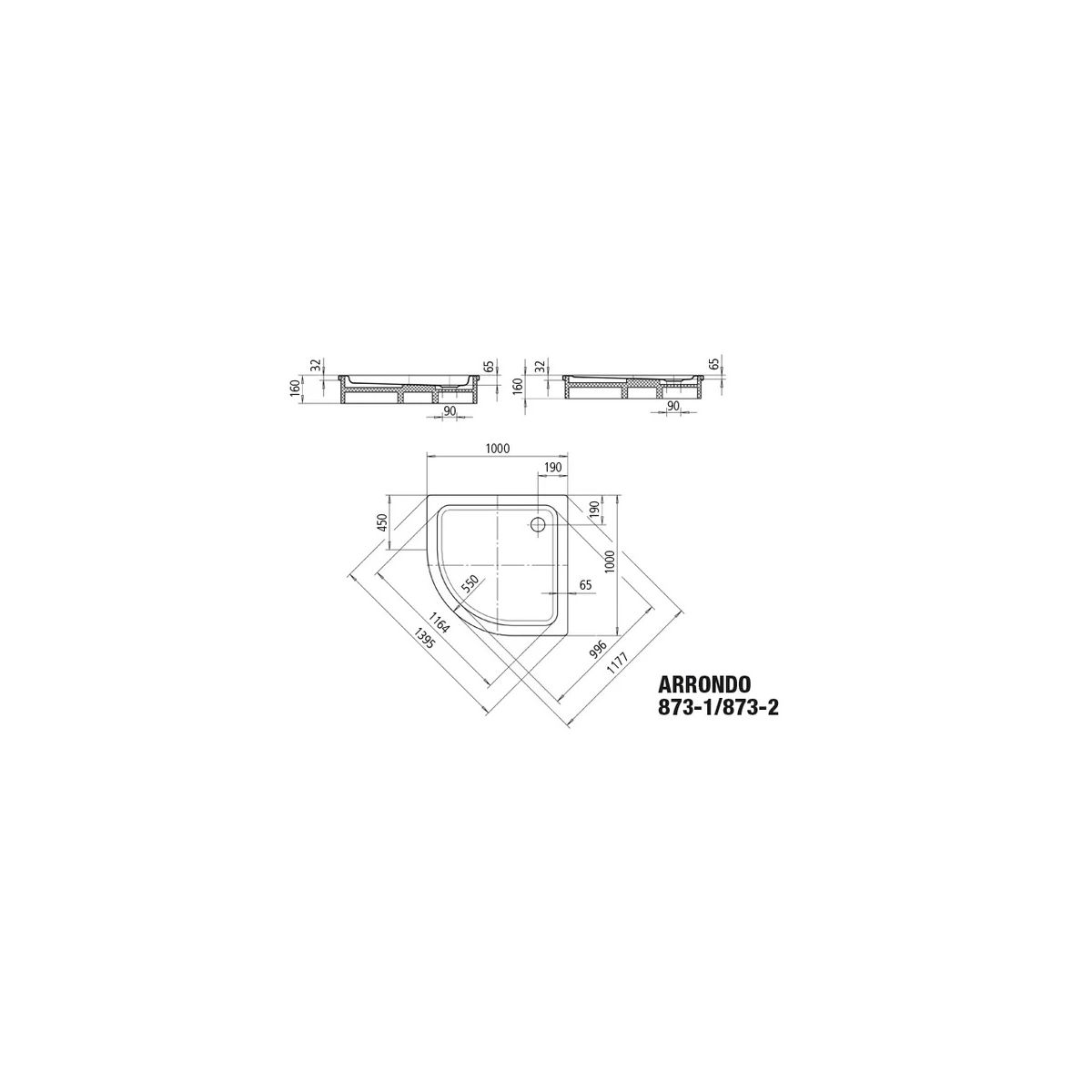 Kaldewei Arrondo plato de ducha semicircular 100x100 cm blanco 460300010001
