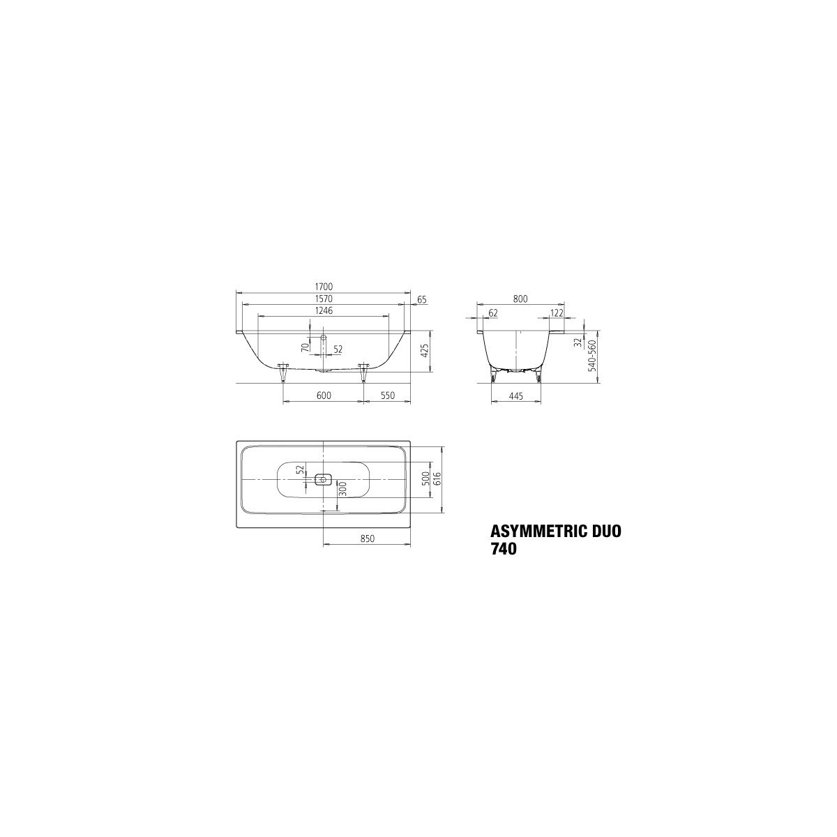 Kaldewei Asymmetric Duo bañera rectangular 170x80 cm blanco 274000010001