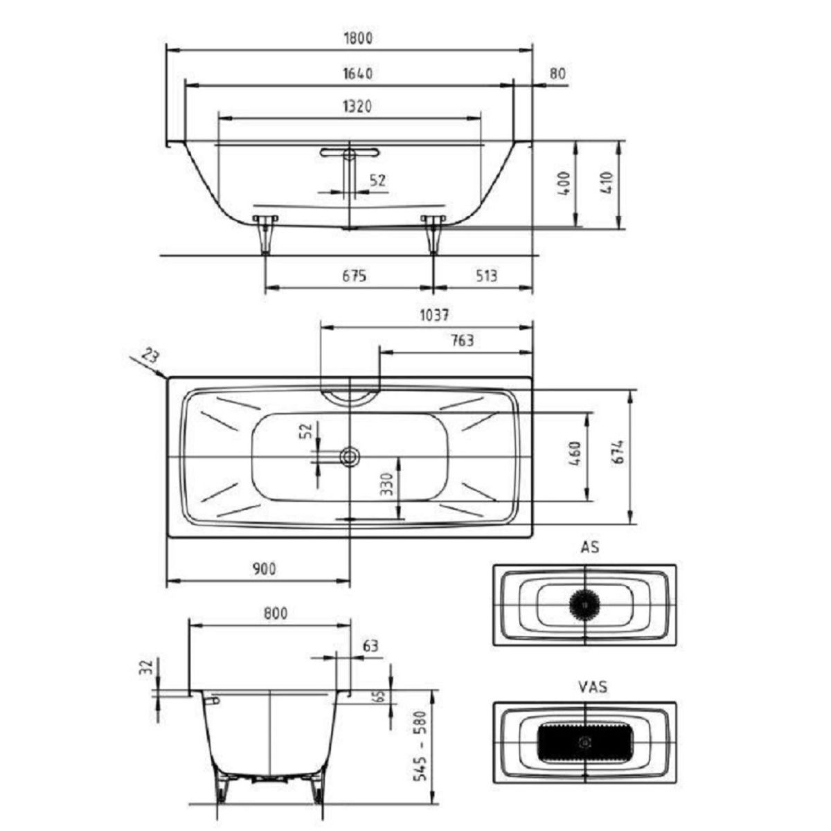 Kaldewei Cayono bañera rectangular 180x80 cm blanco 272500010711